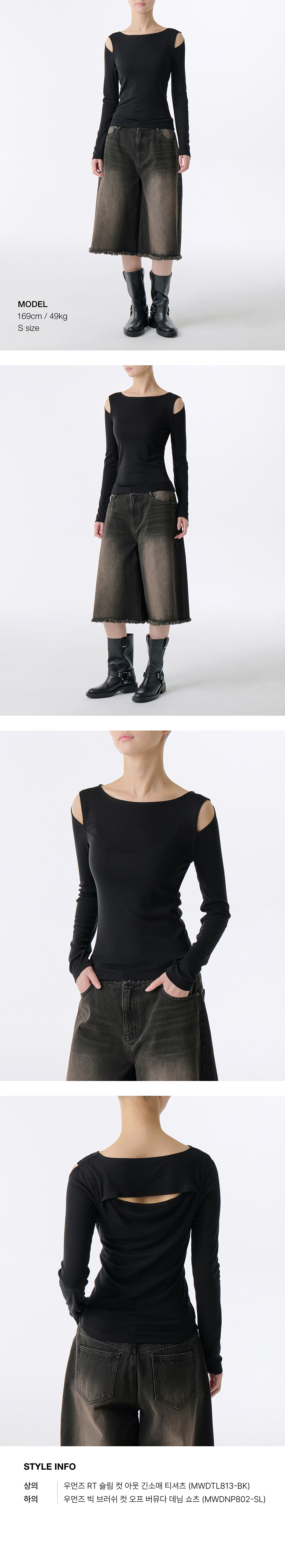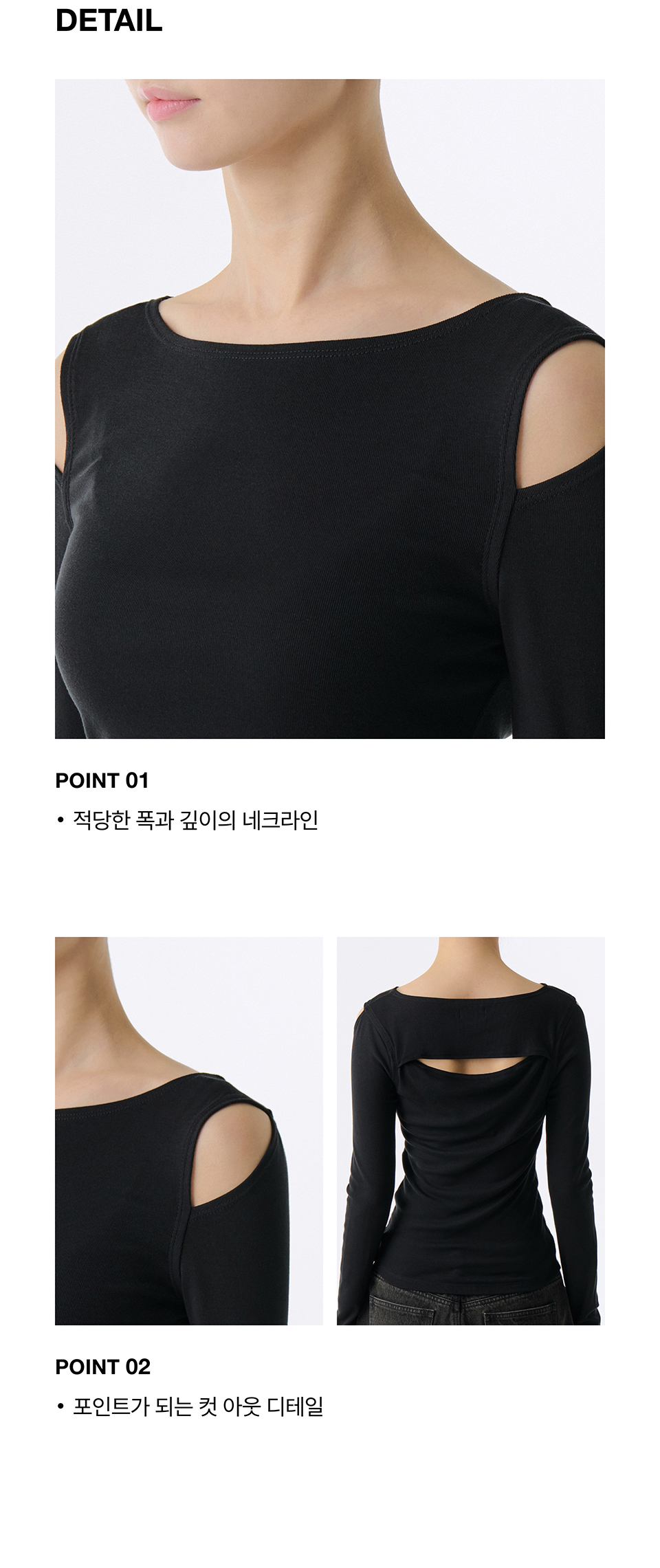 우먼즈 RT 슬림 컷 아웃 긴소매 티셔츠 [블랙]
