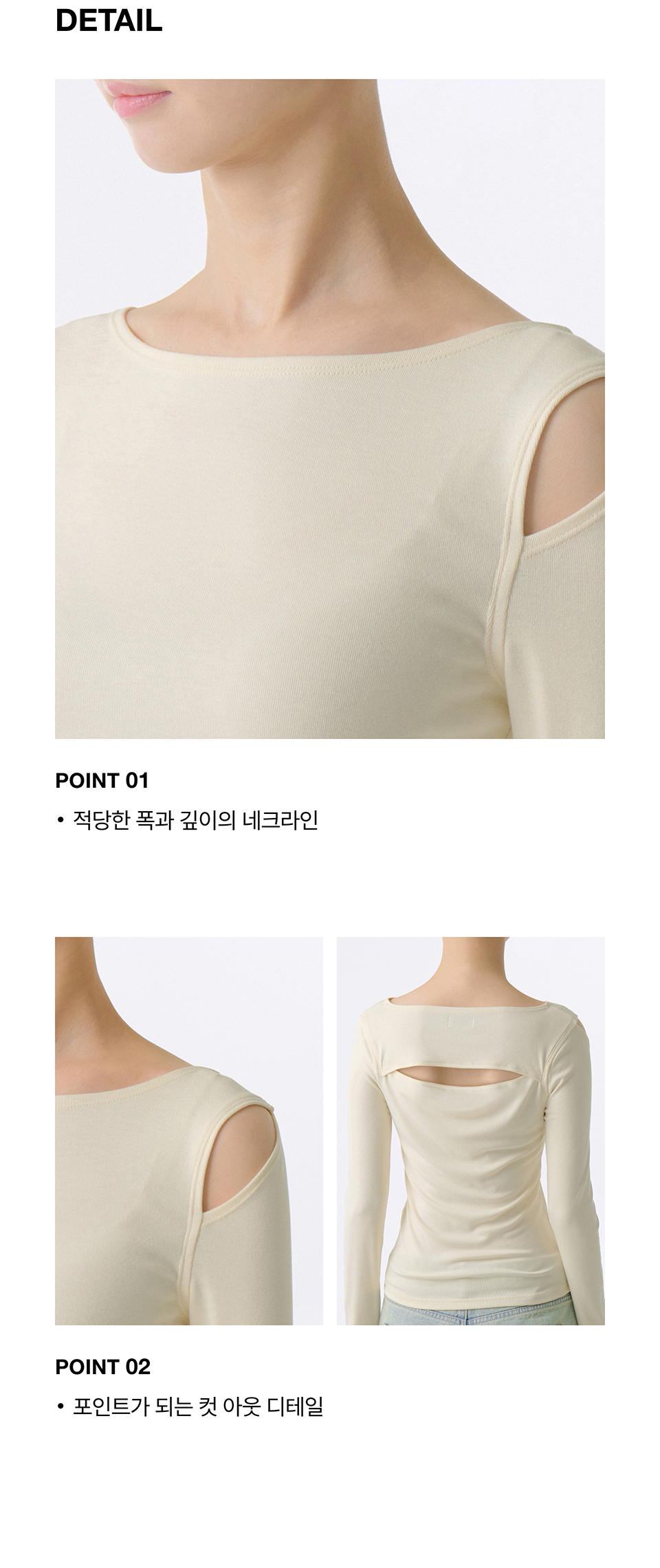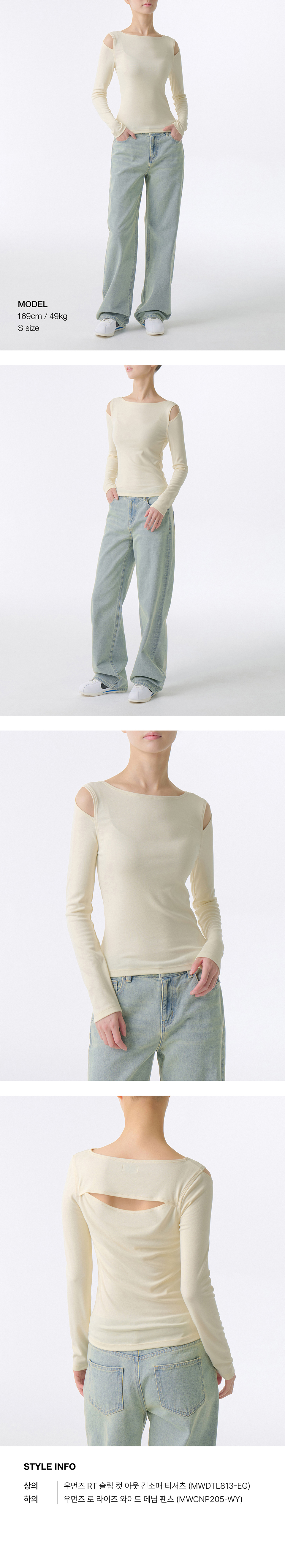 우먼즈 RT 슬림 컷 아웃 긴소매 티셔츠 [에그렛]