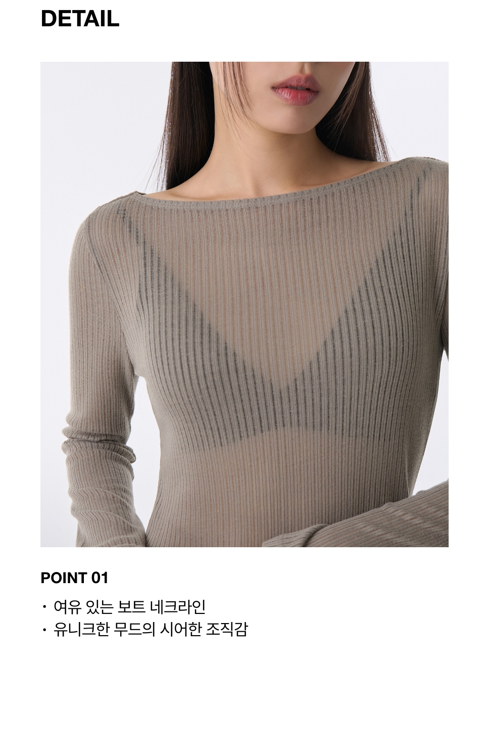 우먼즈 버티컬 시어 보트 넥 긴소매 티셔츠 [토프]