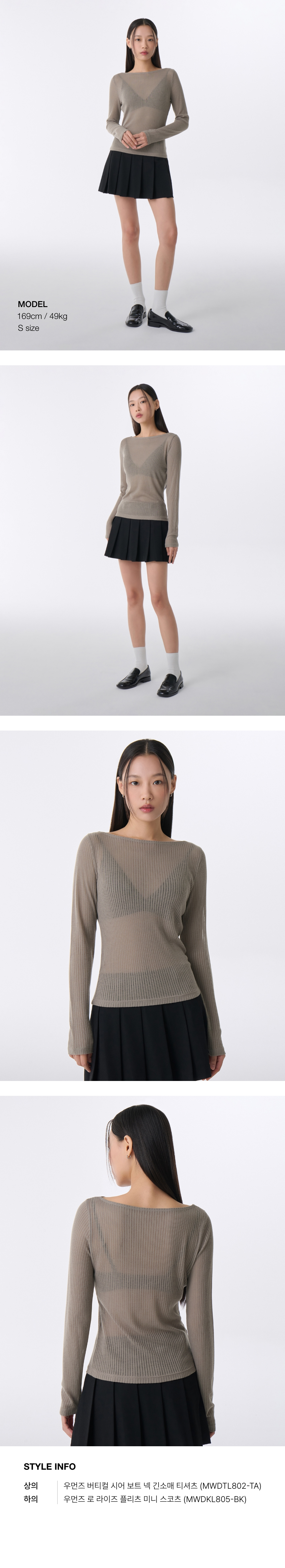 우먼즈 버티컬 시어 보트 넥 긴소매 티셔츠 [블랙]