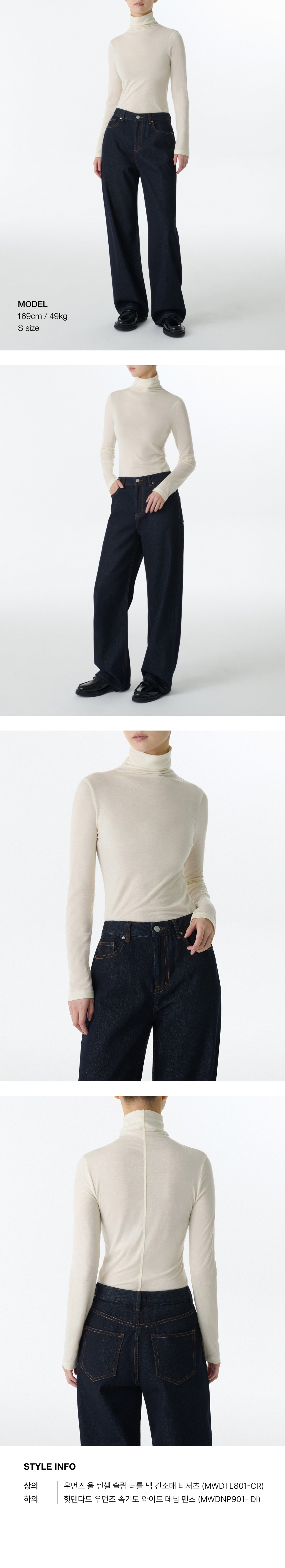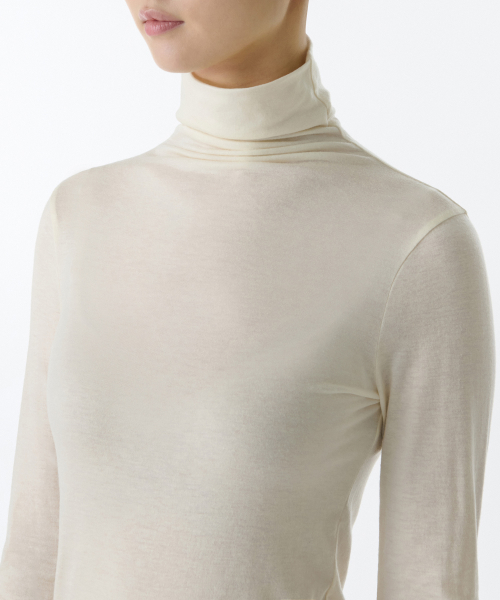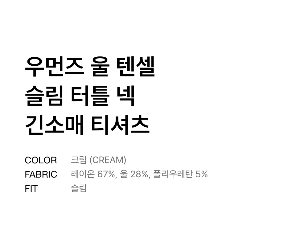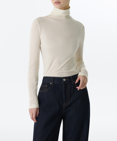 우먼즈 울 텐셀 슬림 터틀 넥 긴소매 티셔츠 [크림]