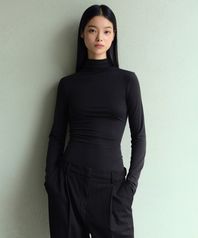우먼즈 울 텐셀 슬림 터틀 넥 긴소매 티셔츠 [블랙]