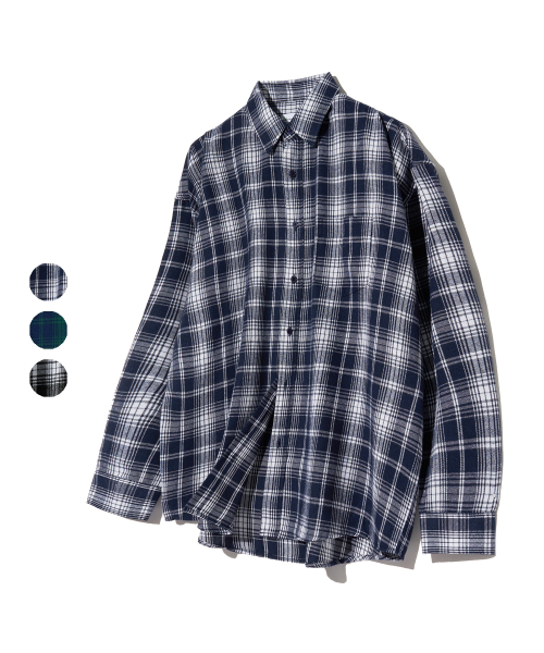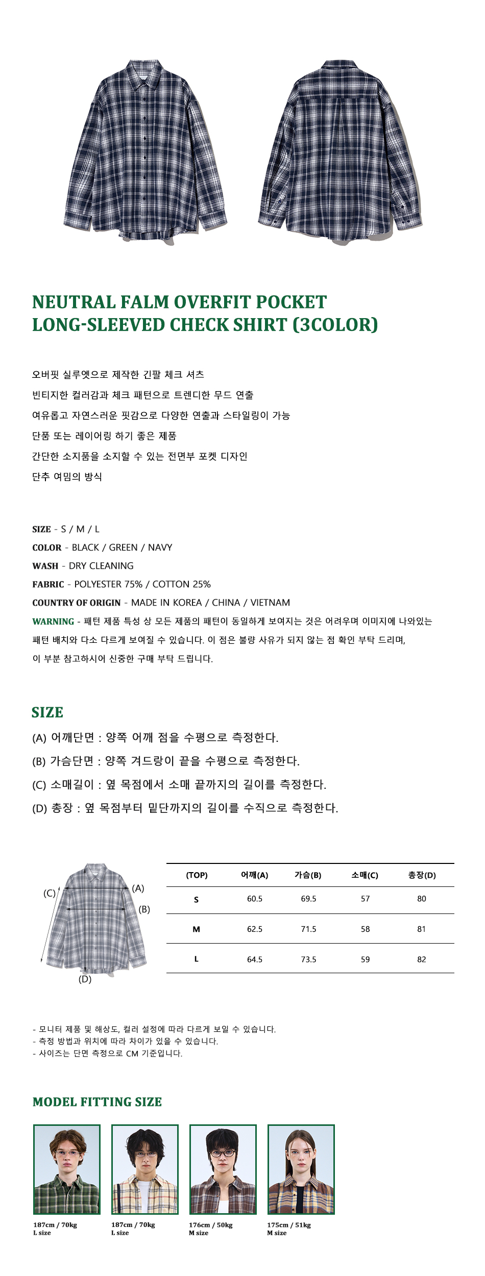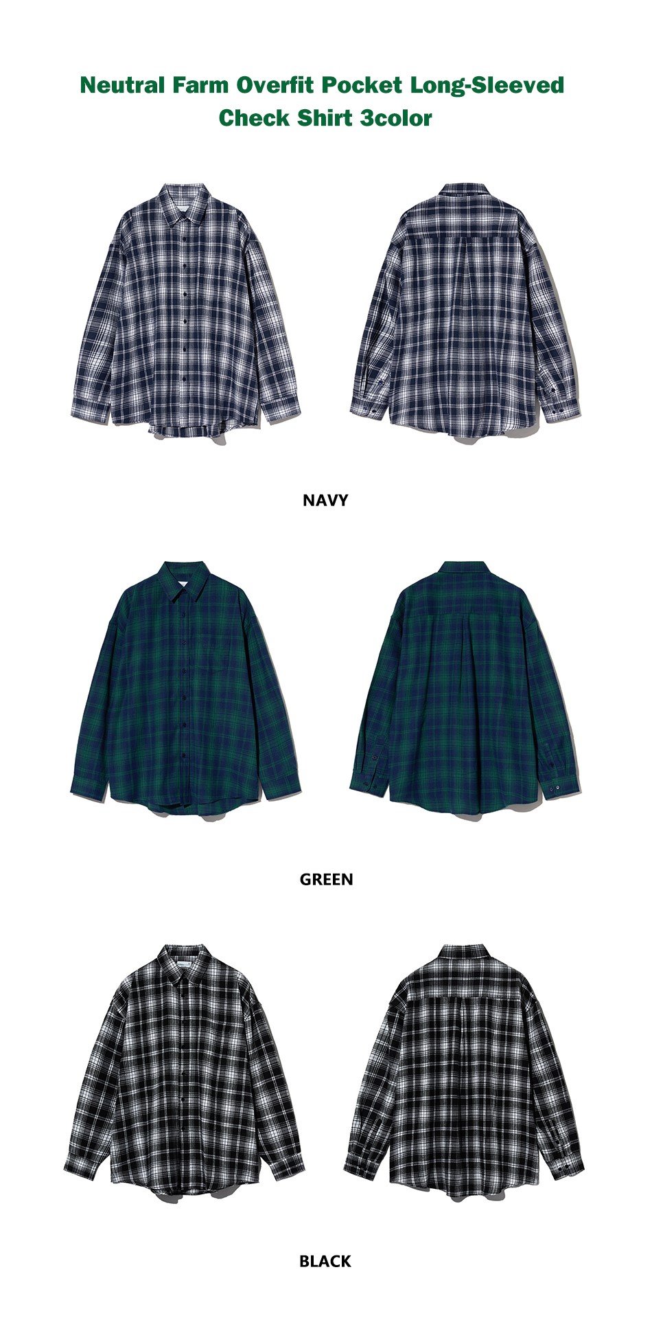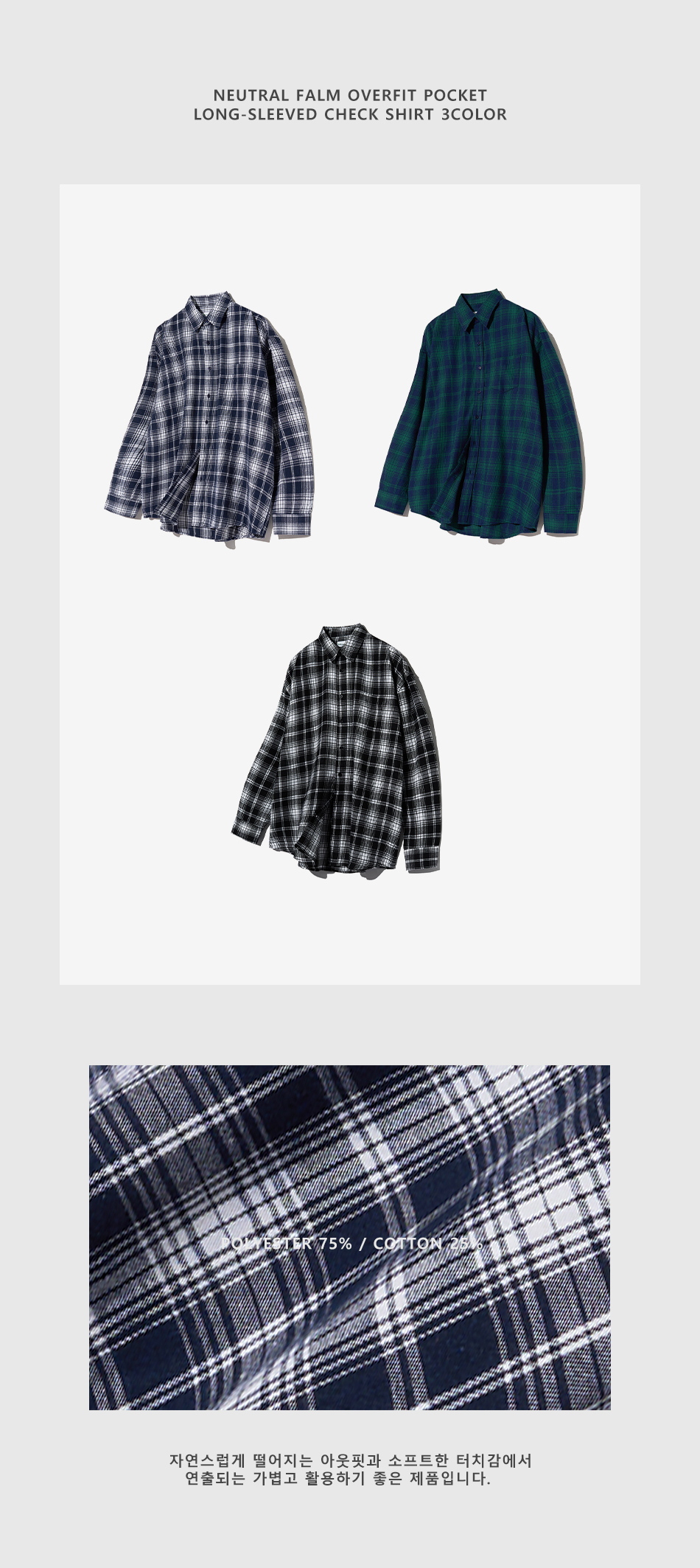 87-STAN080 뉴트럴 팜 오버핏 포켓 긴팔 체크 셔츠