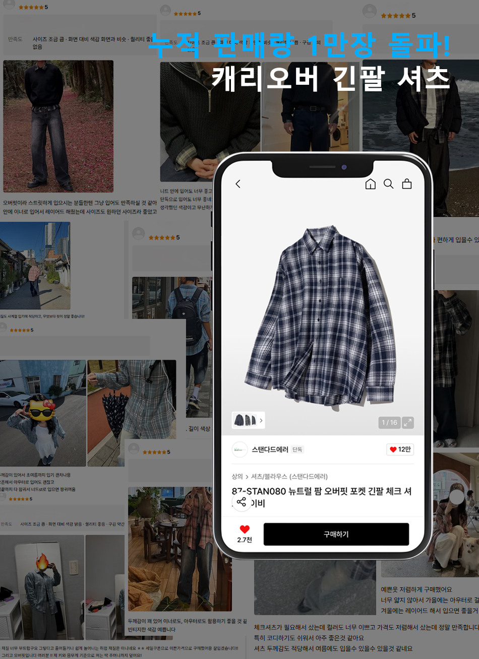 87-STAN083 레트로 플레이드 오버핏 포켓 긴팔 체크 셔츠