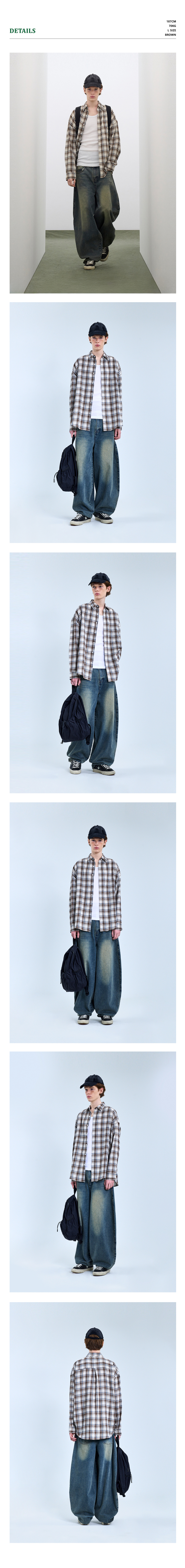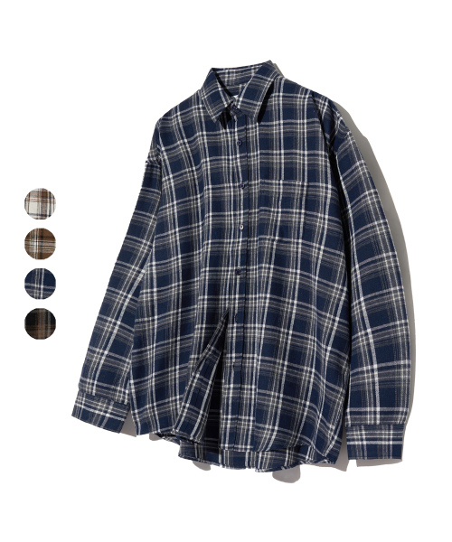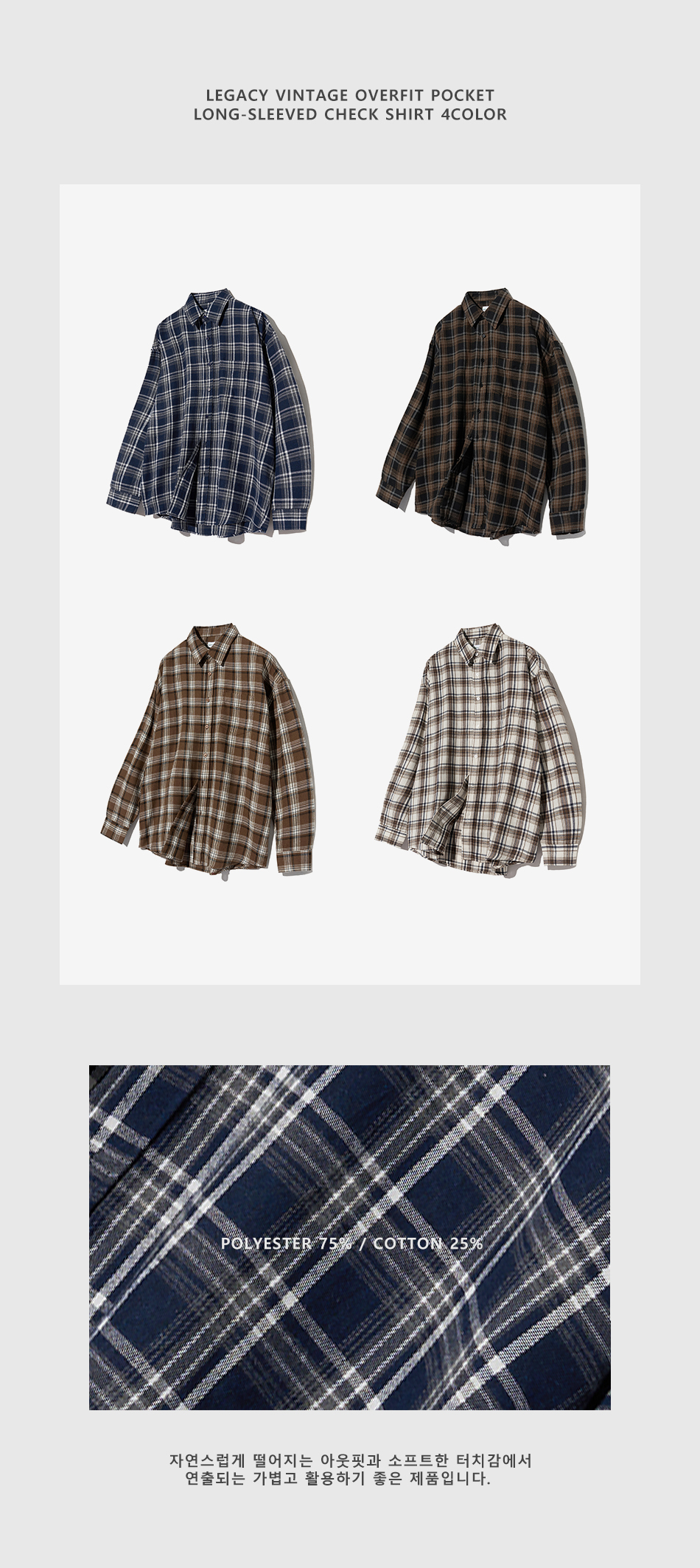 87-STAN083 레트로 플레이드 오버핏 포켓 긴팔 체크 셔츠