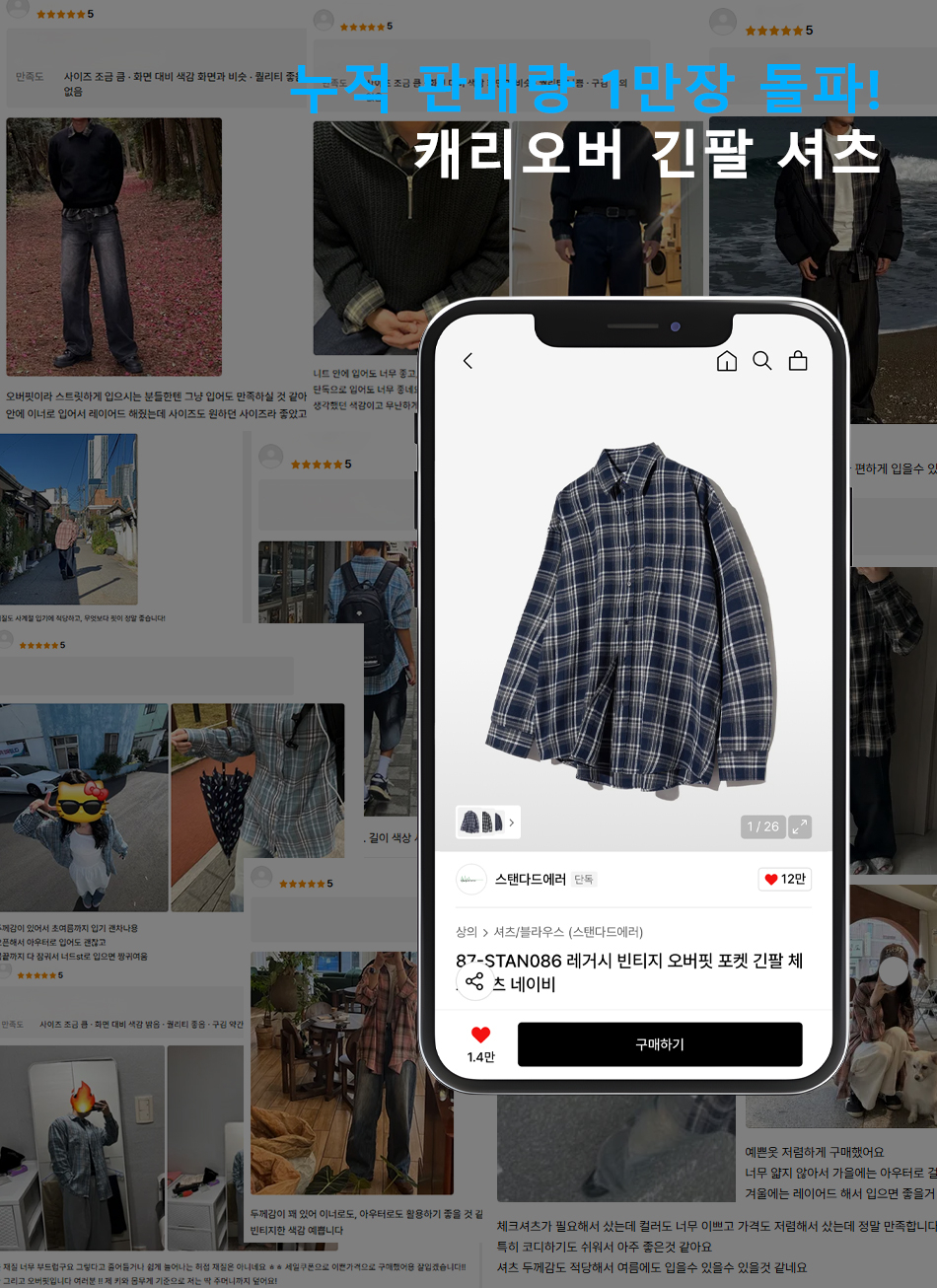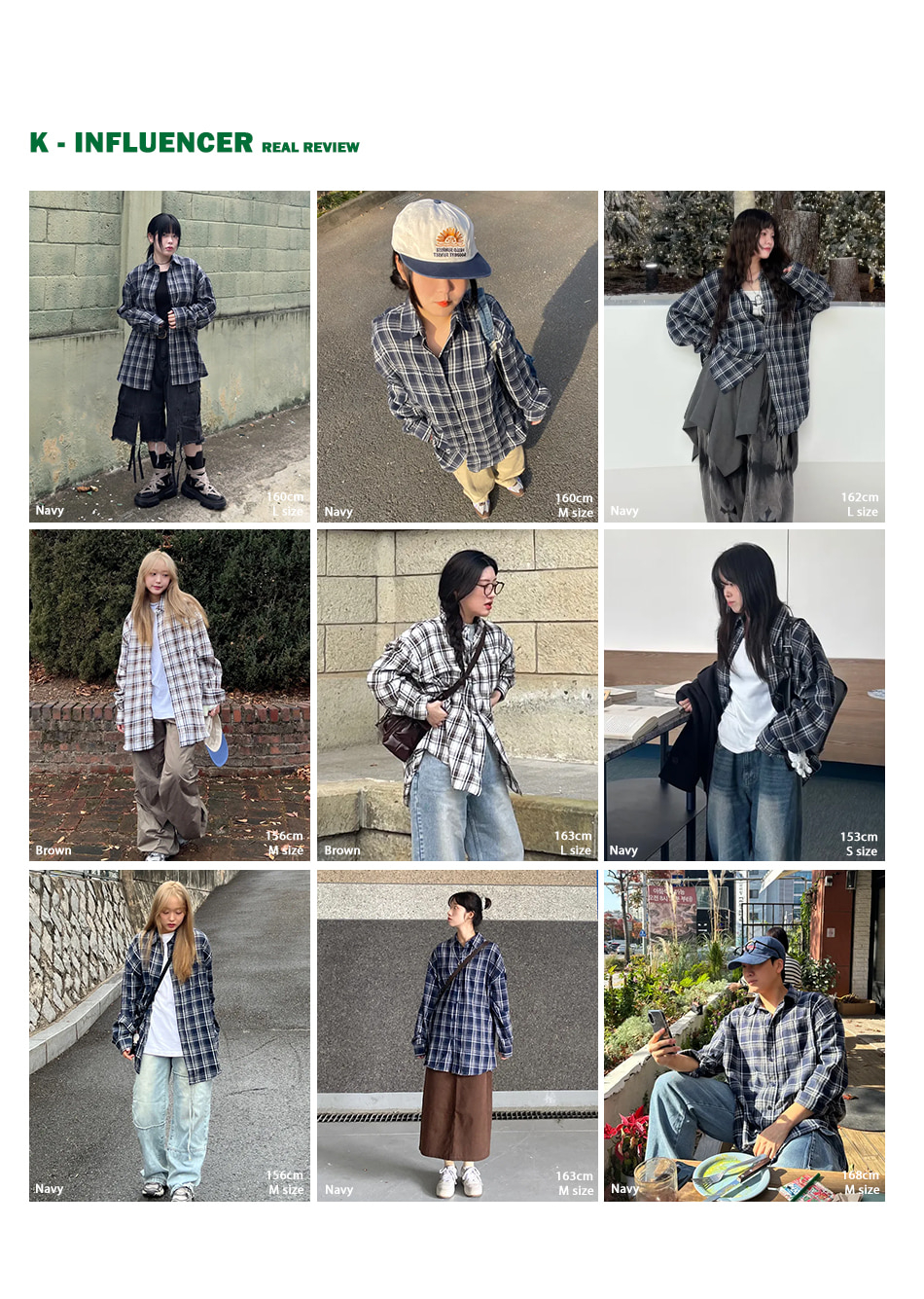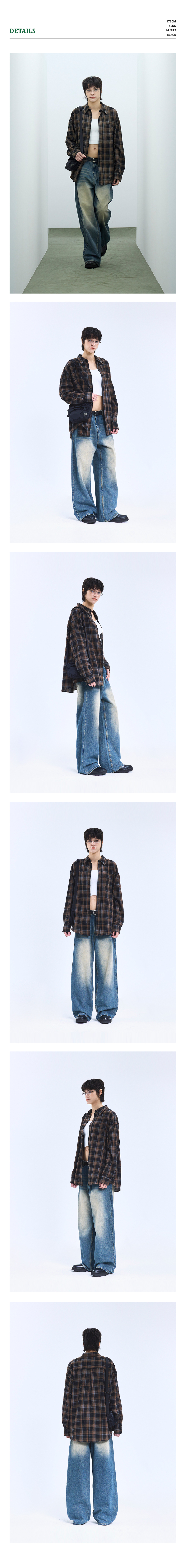 87-STAN083 레트로 플레이드 오버핏 포켓 긴팔 체크 셔츠
