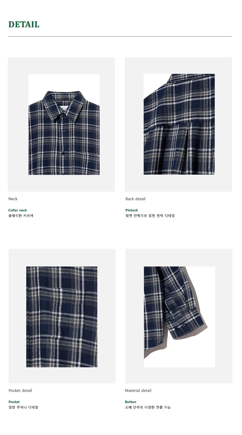 레트로 오버핏 코튼 플란넬 포켓 체크 셔츠 [그린]