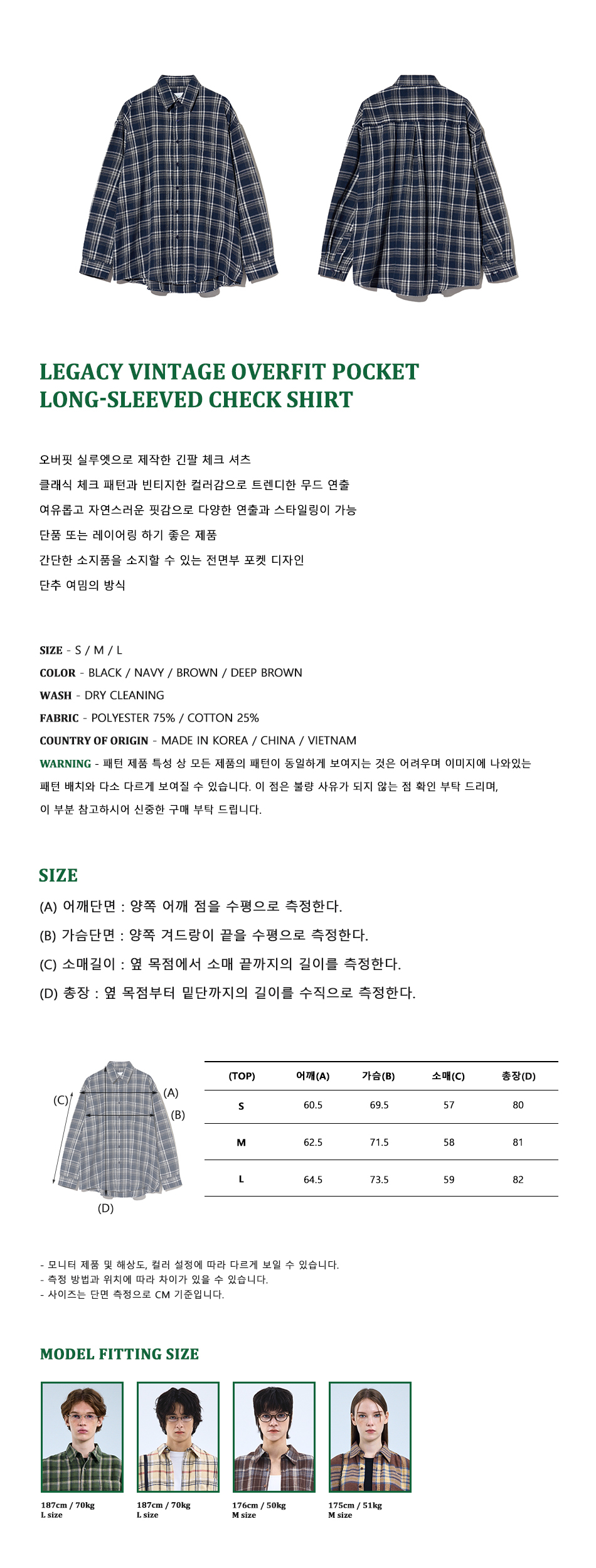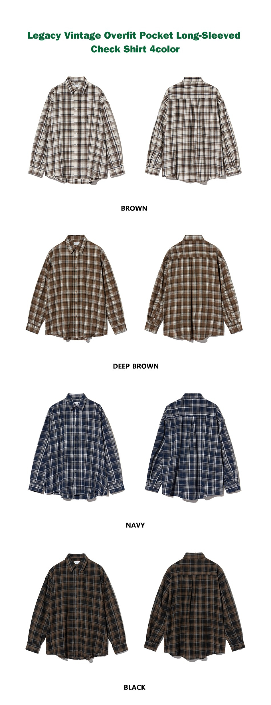 87-STAN086 레거시 빈티지 오버핏 포켓 긴팔 체크 셔츠