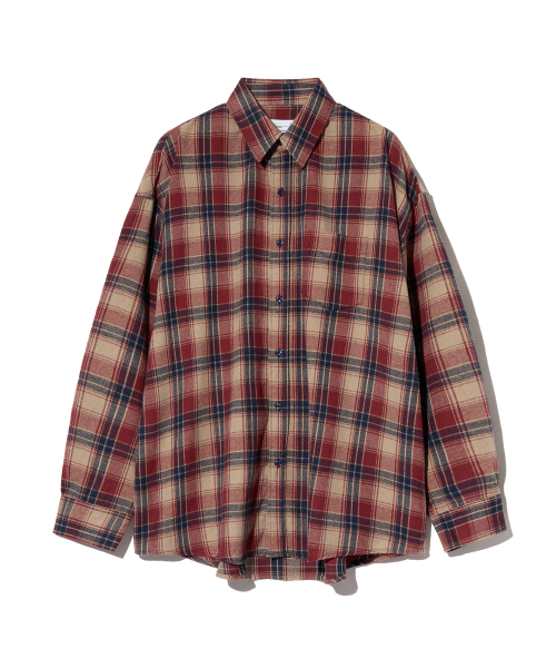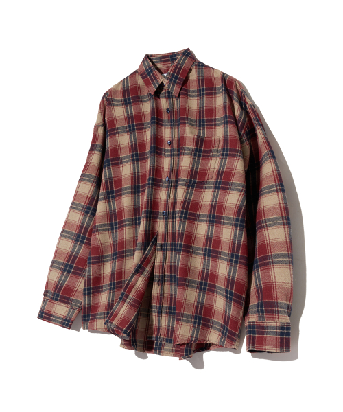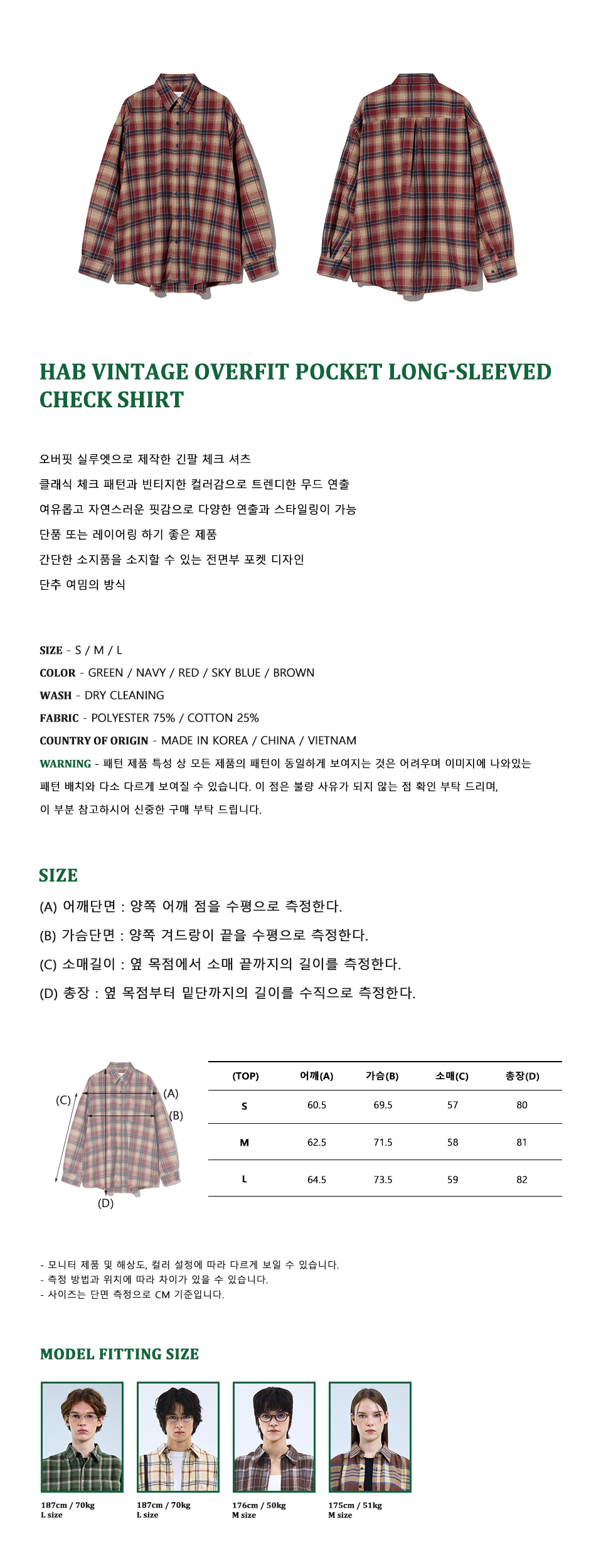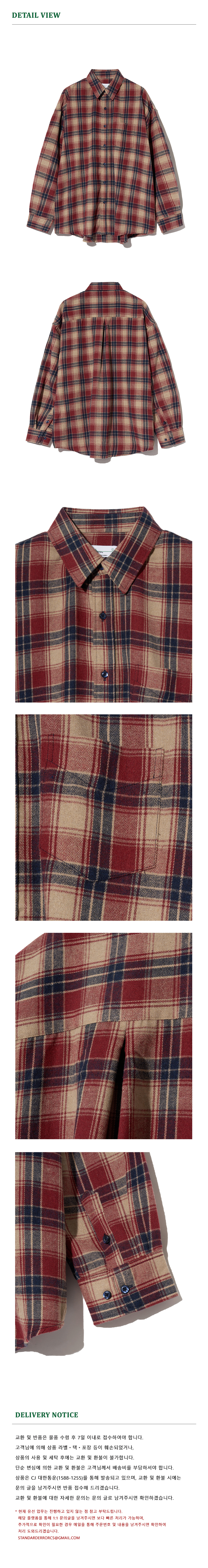 87-STAN088 하브 빈티지 오버핏 포켓 긴팔 체크 셔츠 레드