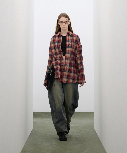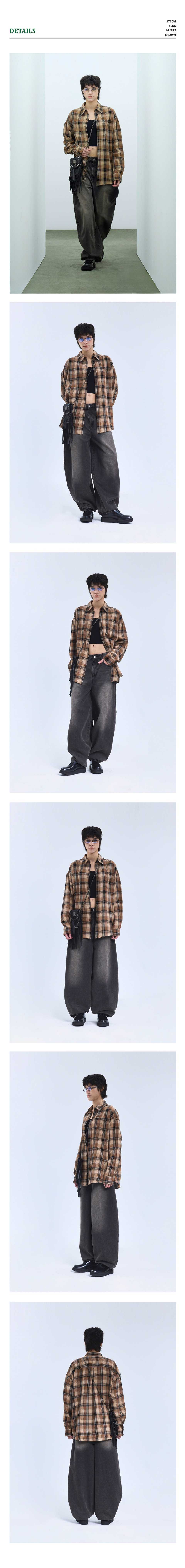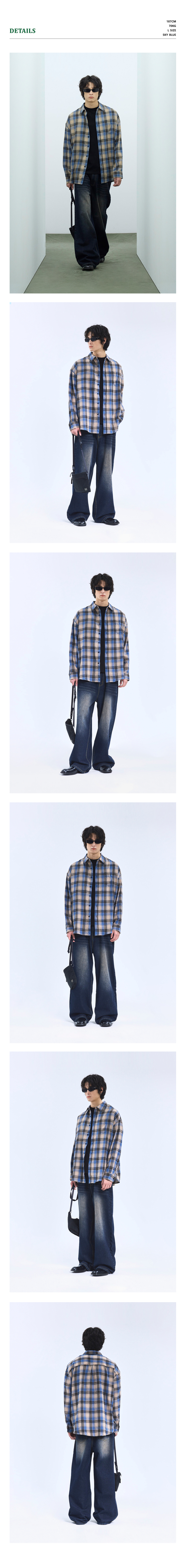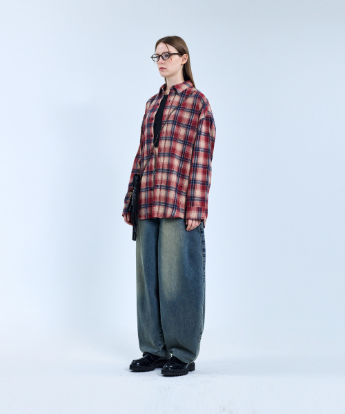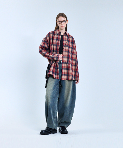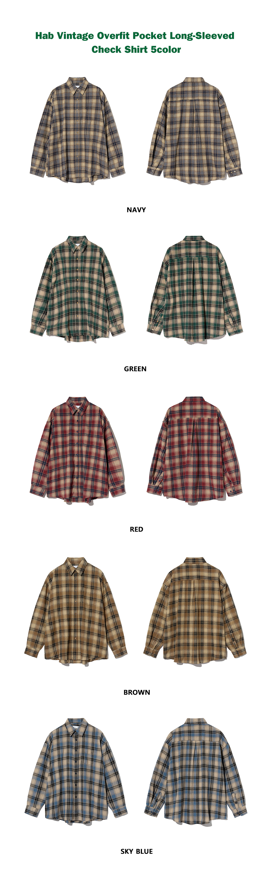 87-STAN083 레트로 플레이드 오버핏 포켓 긴팔 체크 셔츠
