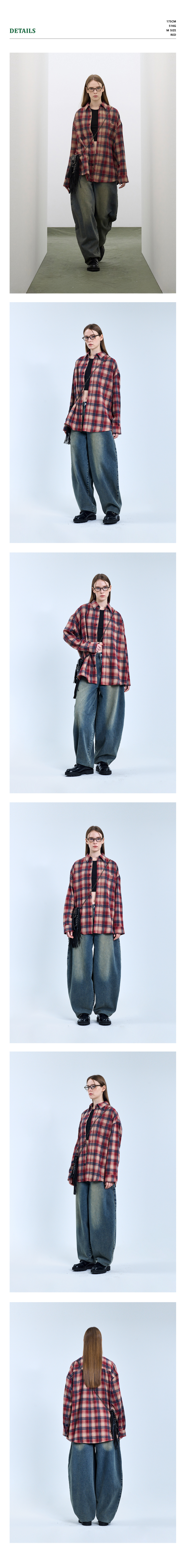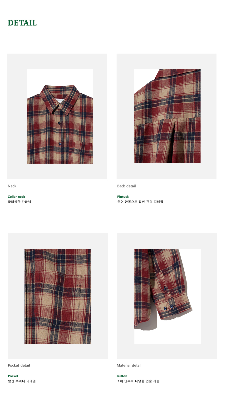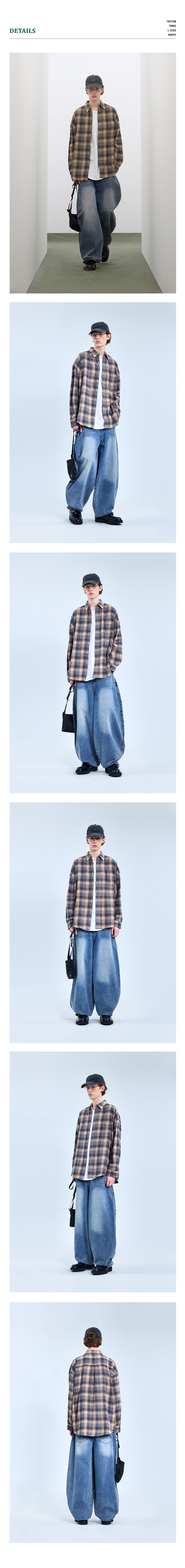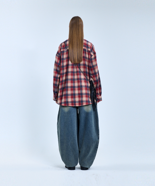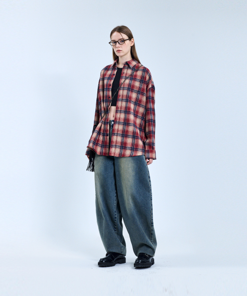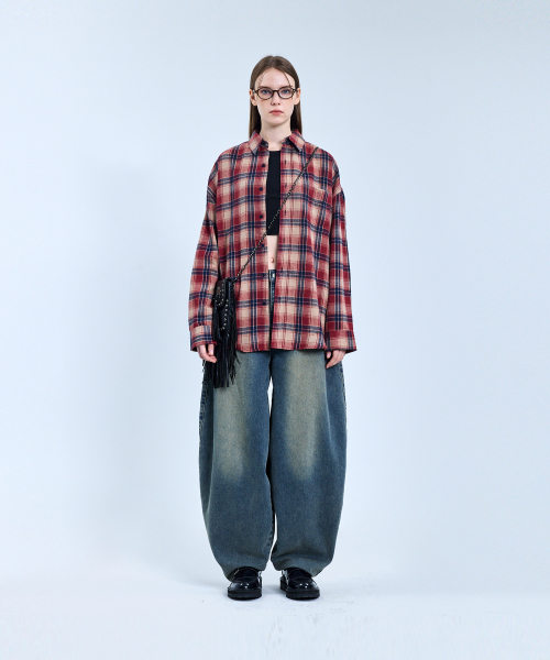 87-STAN083 레트로 플레이드 오버핏 포켓 긴팔 체크 셔츠
