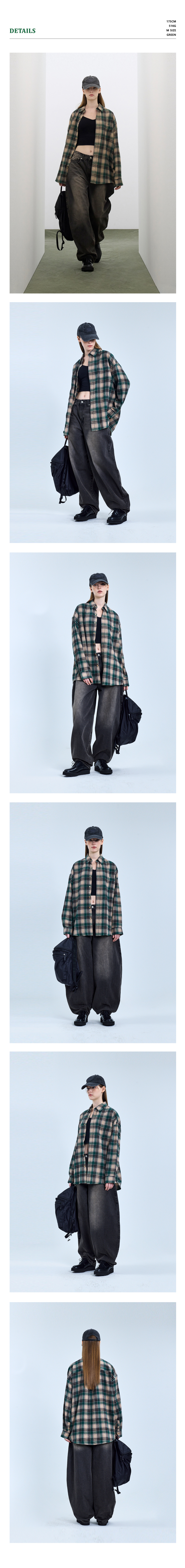 87-STAN088 하브 빈티지 오버핏 포켓 긴팔 체크 셔츠 그린