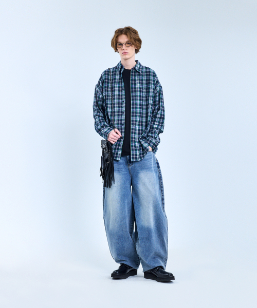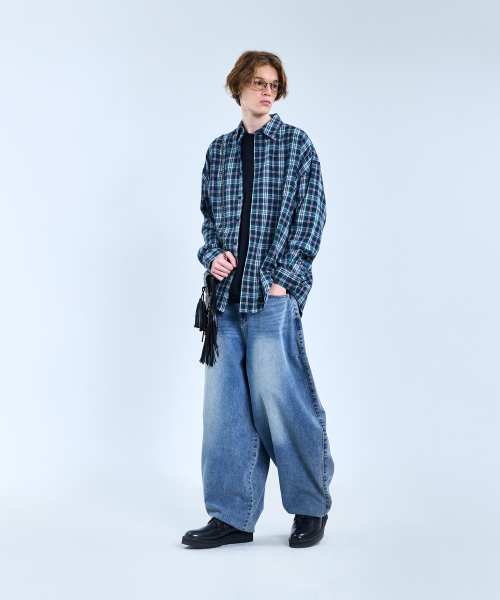 87-STAN047 벌룬핏 워싱 와이드 데님팬츠 빈티지워시드블루
