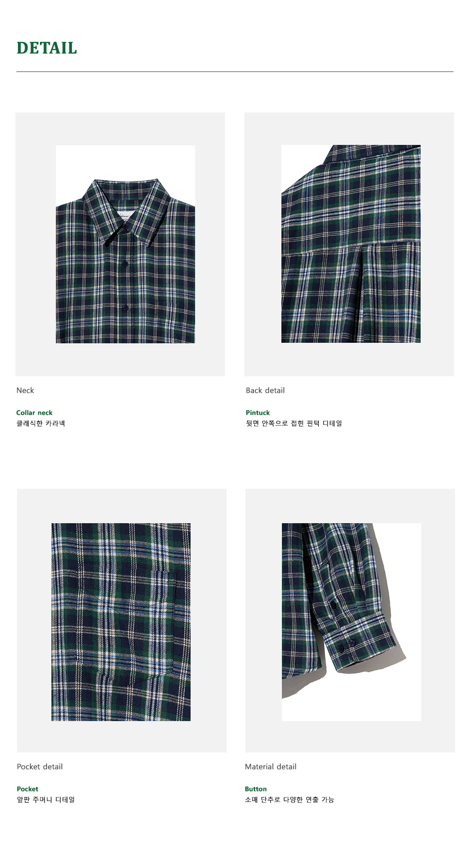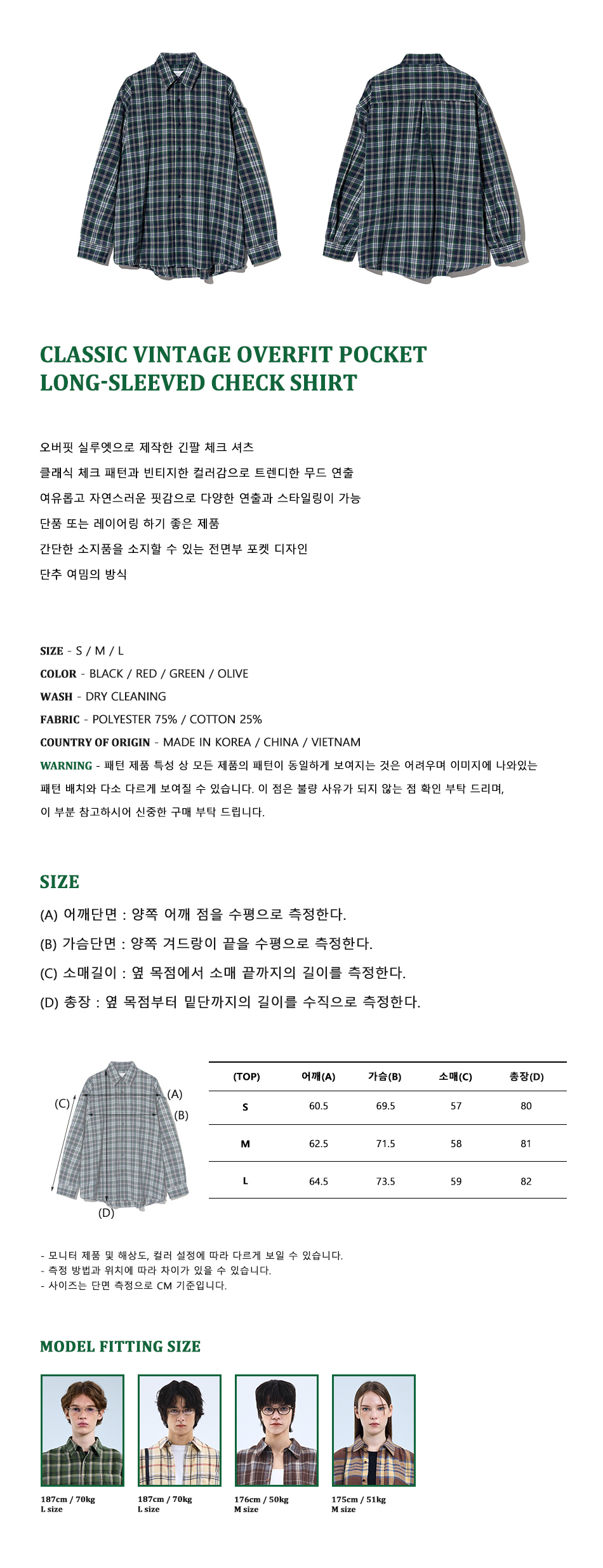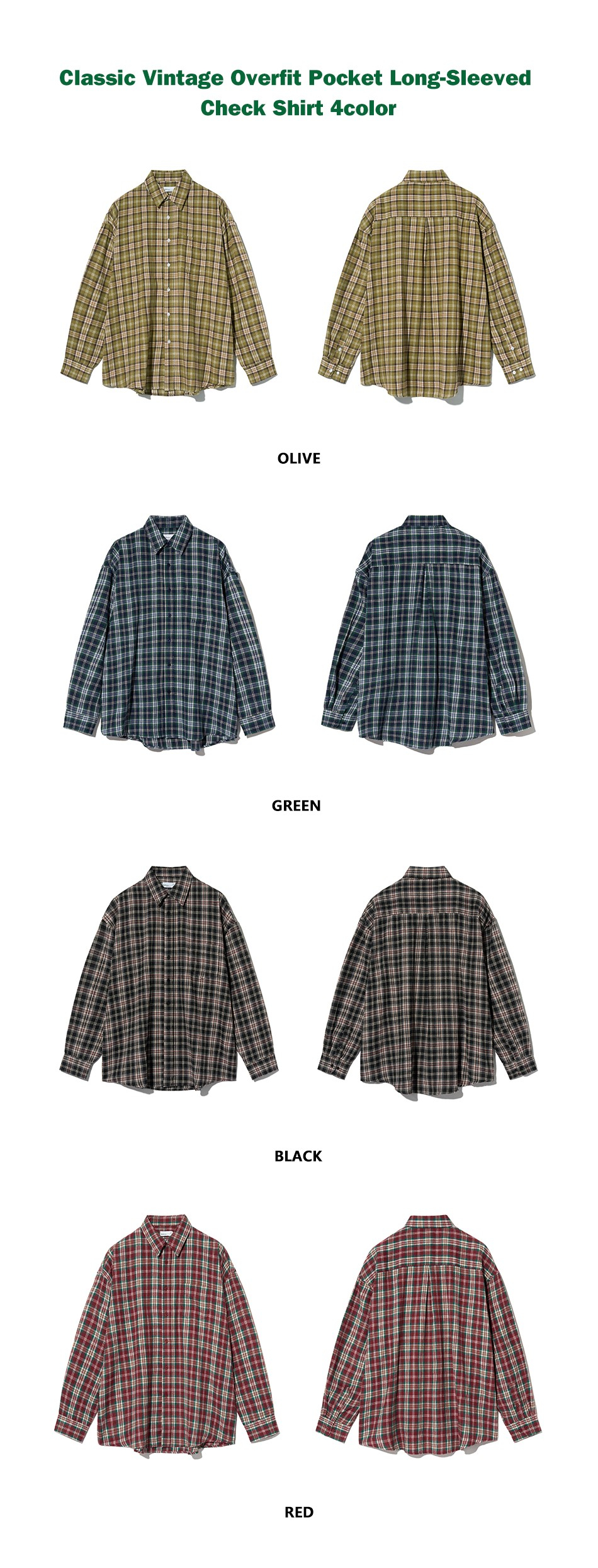 87-STAN089 클래식 빈티지 오버핏 포켓 긴팔 체크 셔츠 그린
