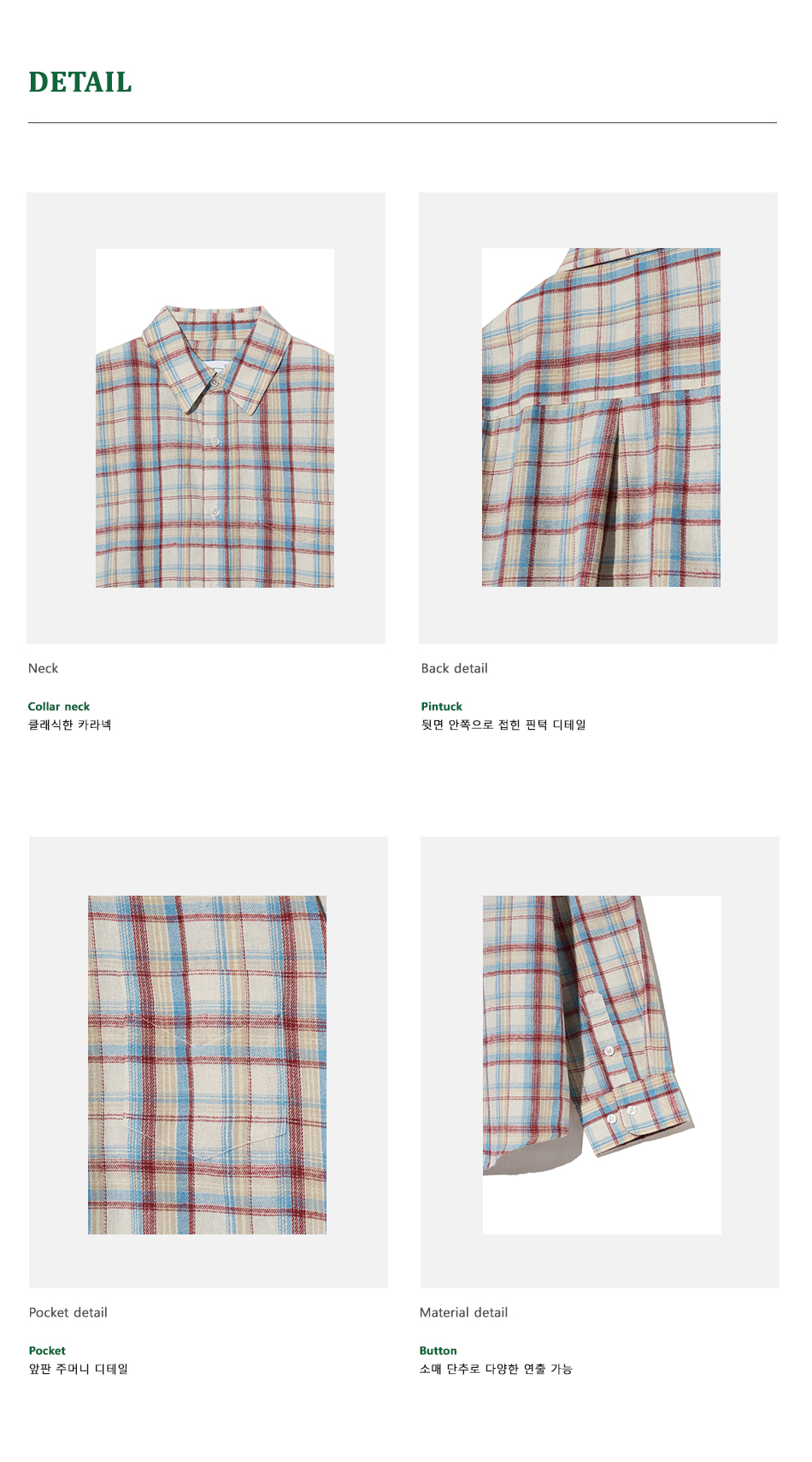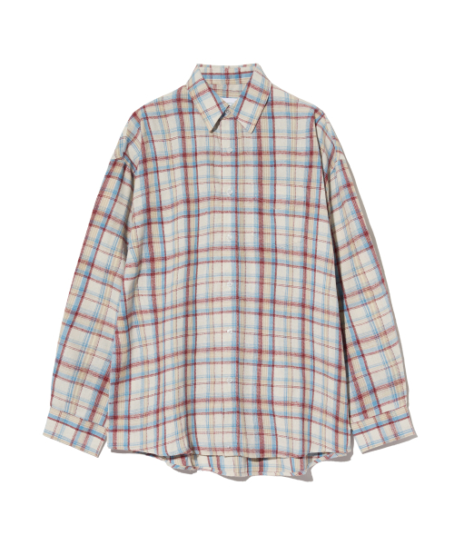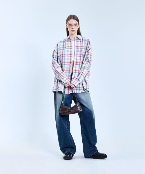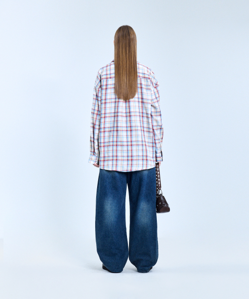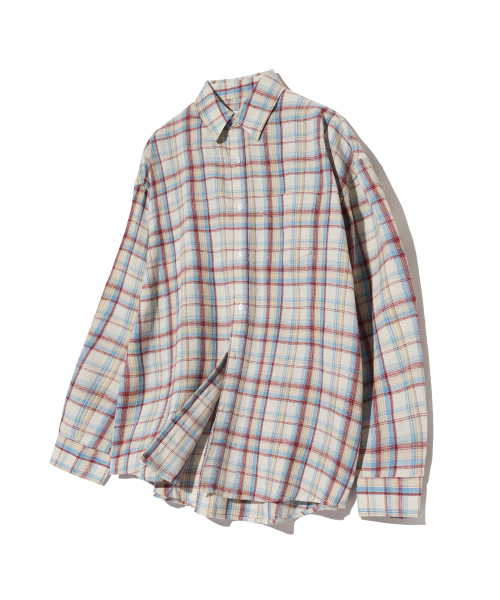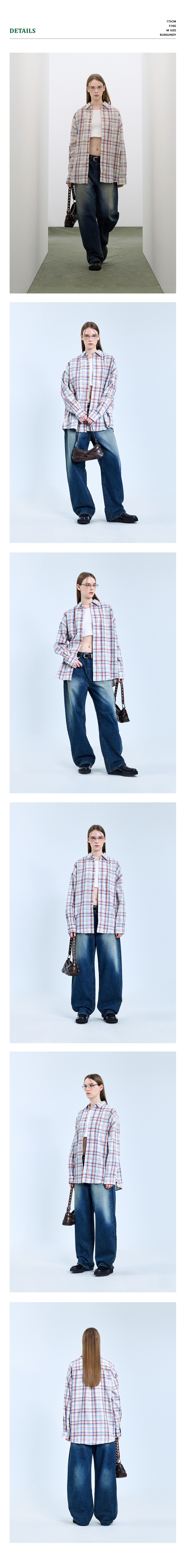 87-STAN090 레트로 컬러 오버핏 포켓 긴팔 체크 셔츠 버건디