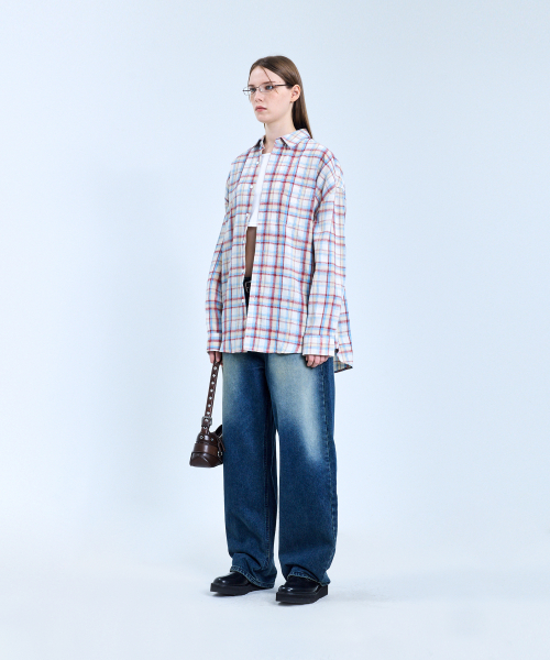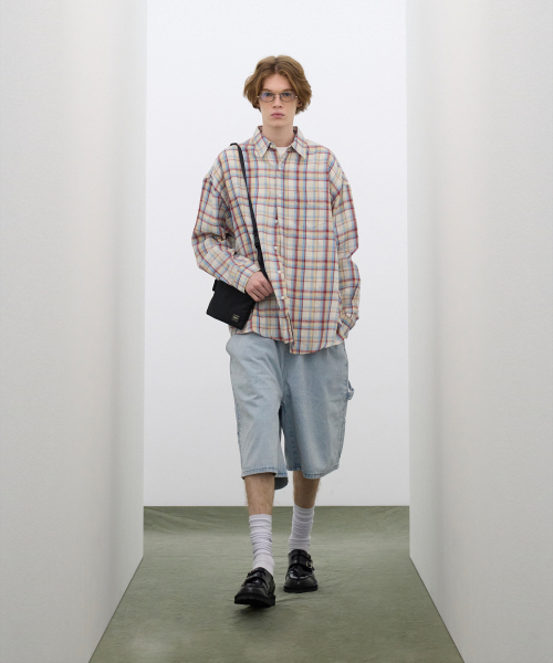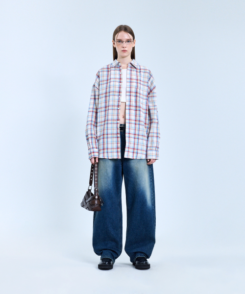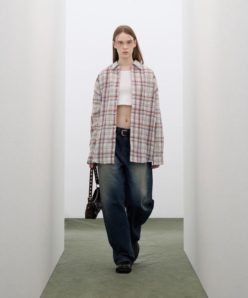 87-STAN081 원포켓 빈티지 오버핏 긴팔 체크 셔츠