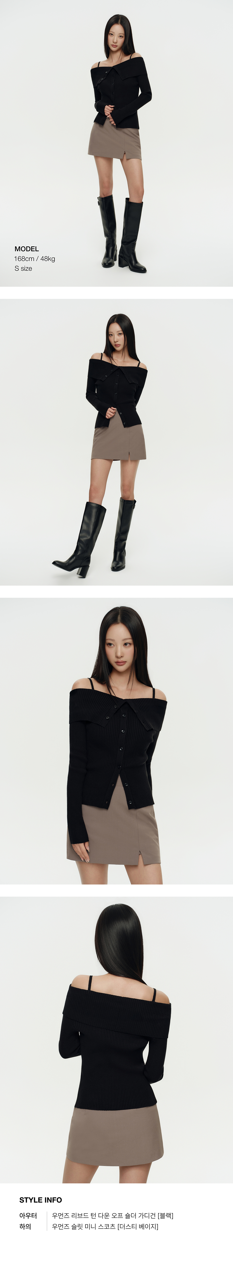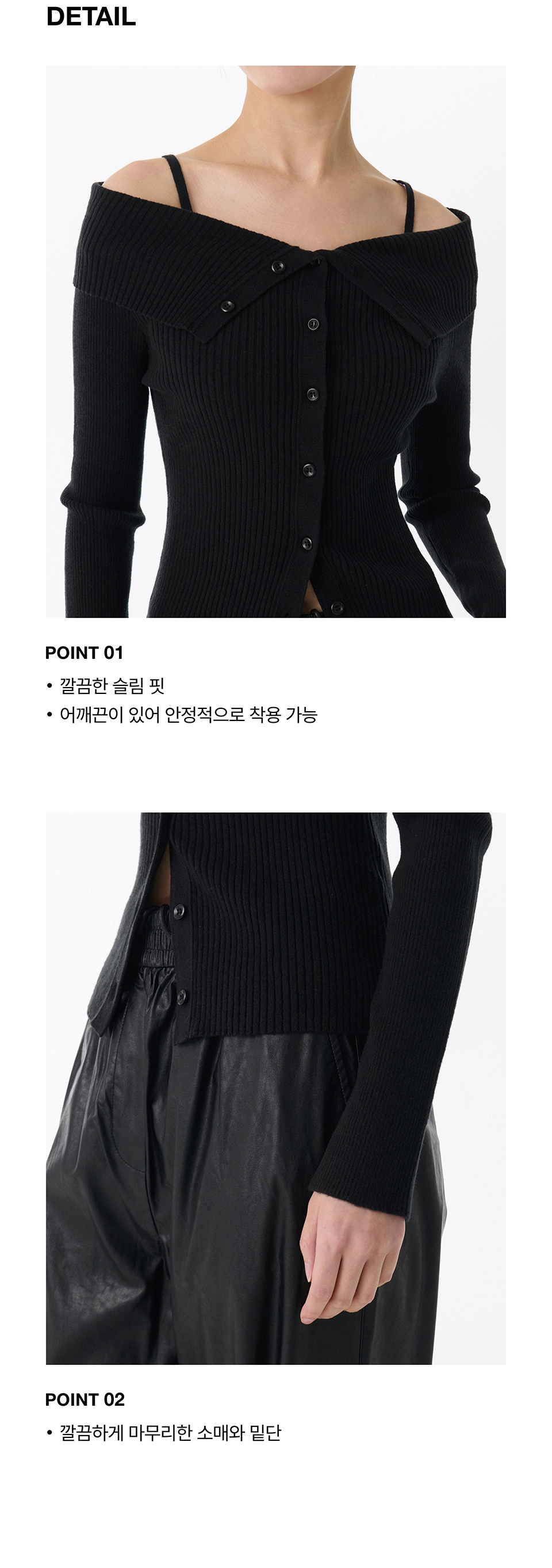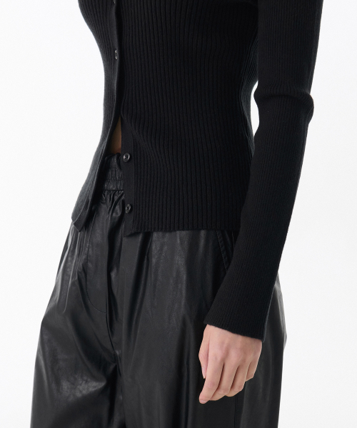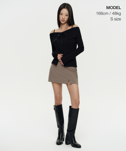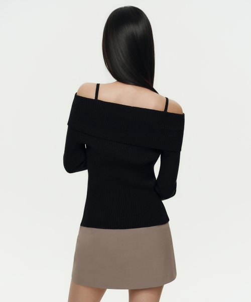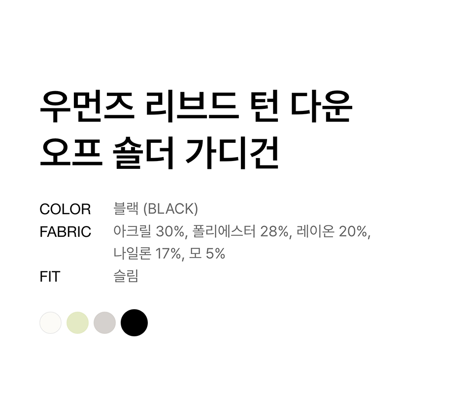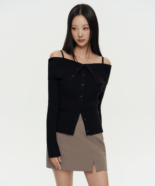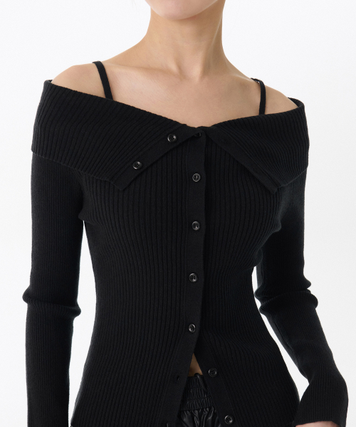 우먼즈 리브드 턴 다운 오프 숄더 가디건 [블랙]