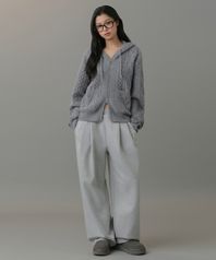 우먼즈 더블 니트 투 턱 와이드 라운지 스웨트 팬츠 [미디엄 그레이]