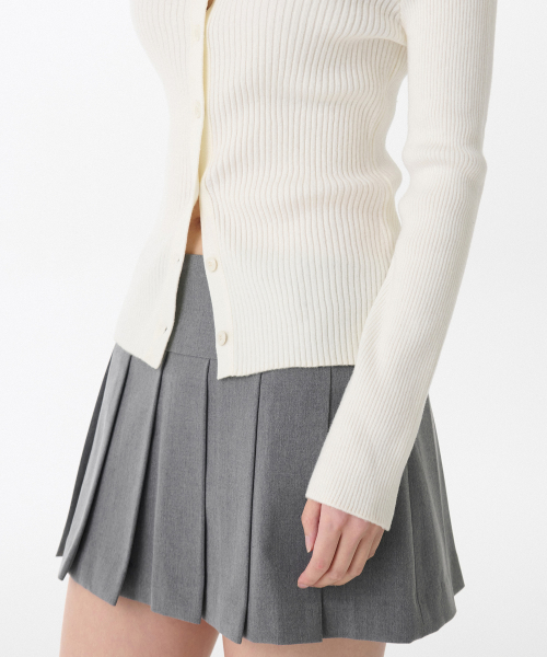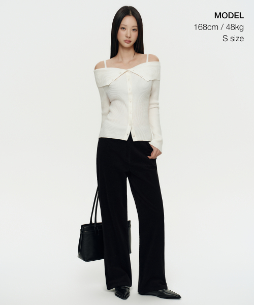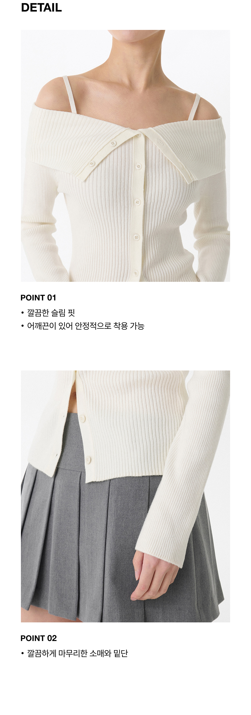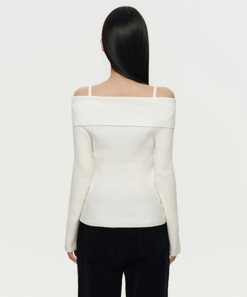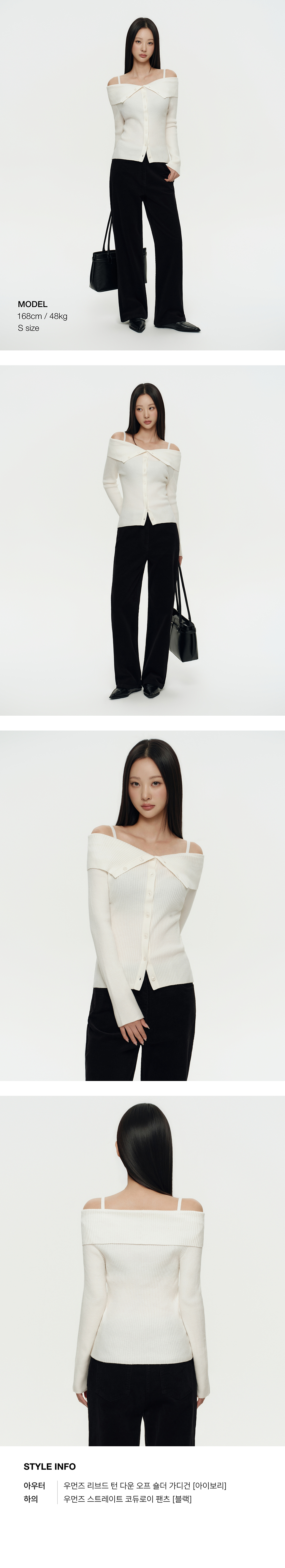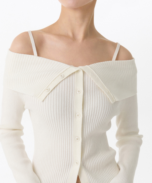 우먼즈 리브드 턴 다운 오프 숄더 가디건 [아이보리]