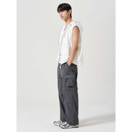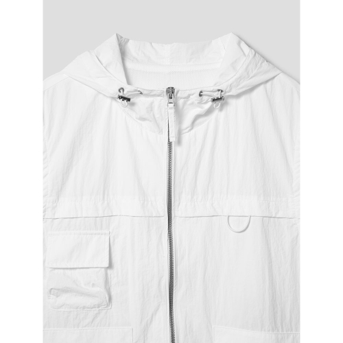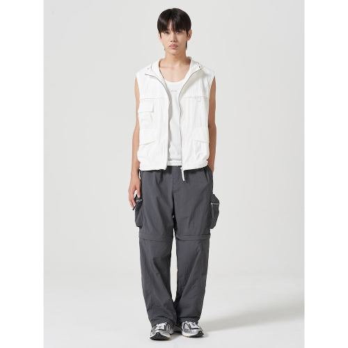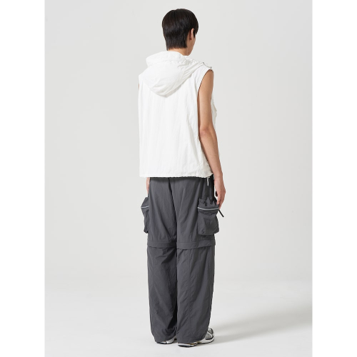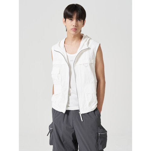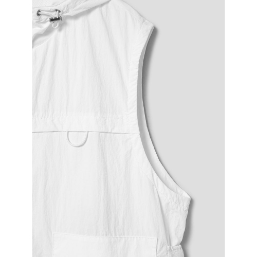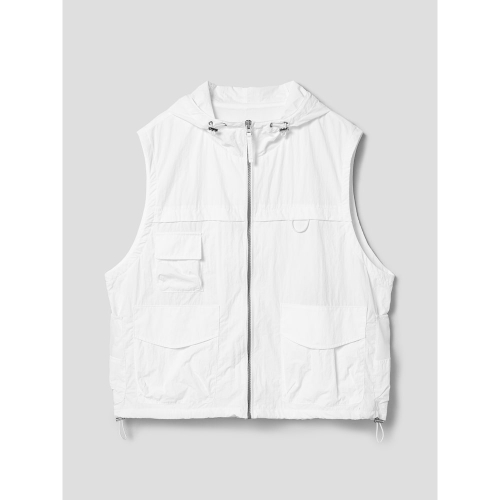 가벼우면서도 내구성이 좋은 나일론 소재로 제작되어 한여름까지도 입기 좋은 후드 베스트입니다. 앞주머니와 작은 메시 소재의 주머니가 함께 구성되어 활용도가 높습니다. 밑단의 스트링 디테일을 활용하여 섬세한 실루엣을 연출할 수 있으며, 세미 오버핏으로 티셔츠와 레이어드하여 연출하기 좋습니다.