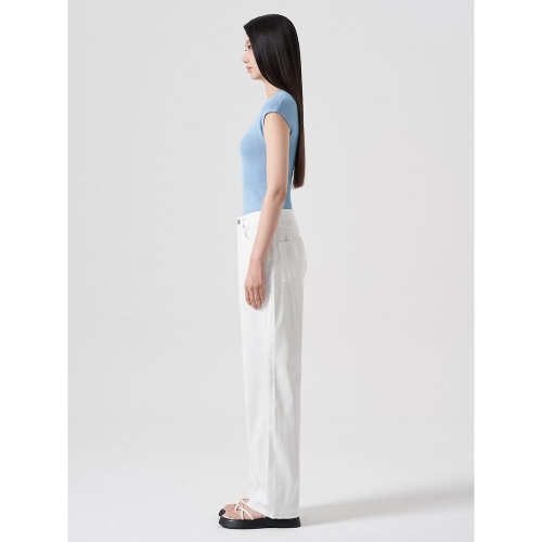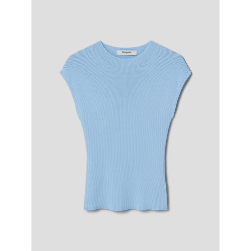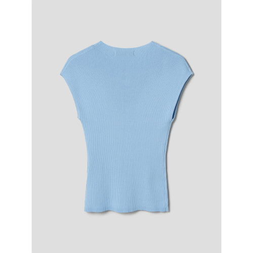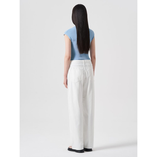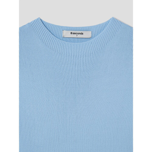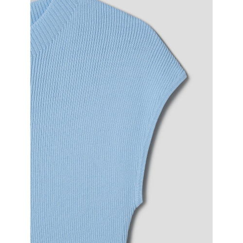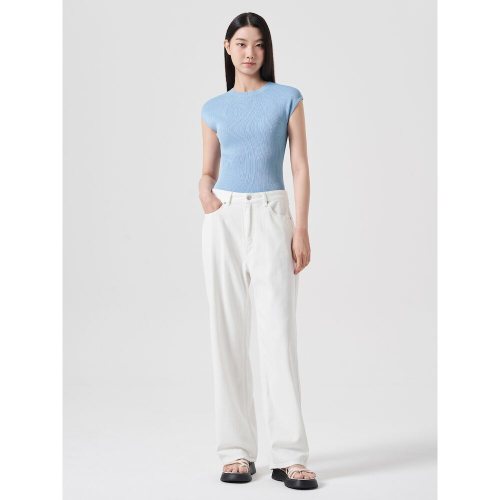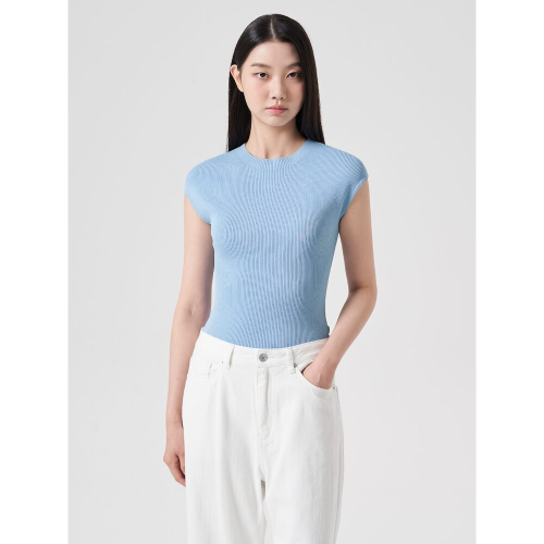 페미닌한 무드의 슬리브리스 니트입니다. 목을 살짝 덮는 모크넥 디테일과 슬림핏으로 제작되어 페미닌한 무드를 더했습니다. 시원한 스카이블루 컬러와 아이보리 컬러로 제작되었습니다.