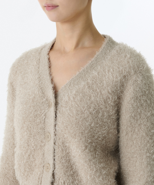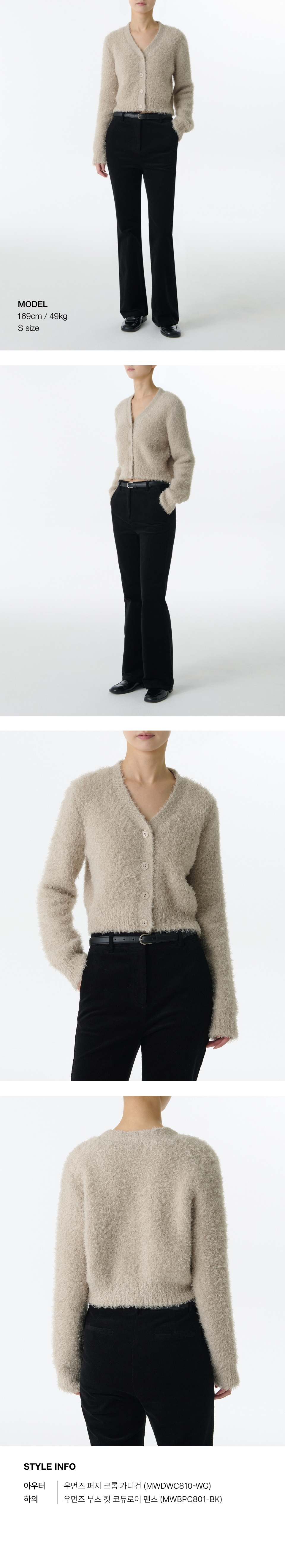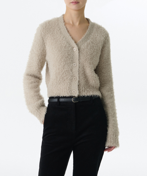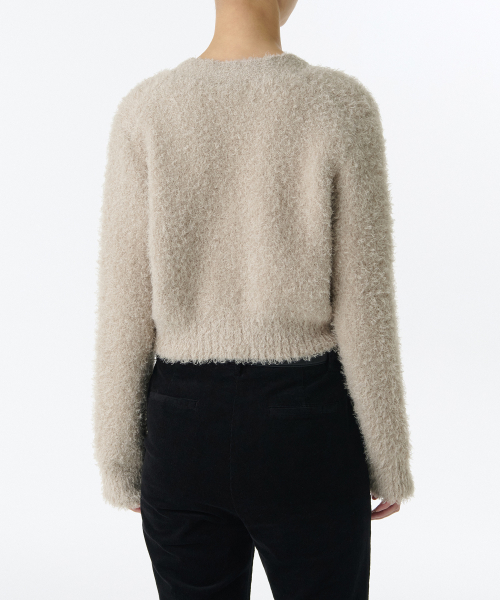 우먼즈 퍼지 크롭 가디건 [웜 그레이]