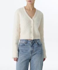 우먼즈 퍼지 크롭 가디건 [아이보리]
