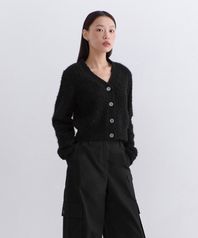 우먼즈 퍼지 크롭 가디건 [블랙]
