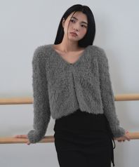 우먼즈 퍼지 크롭 가디건 [웜 그레이]