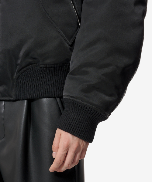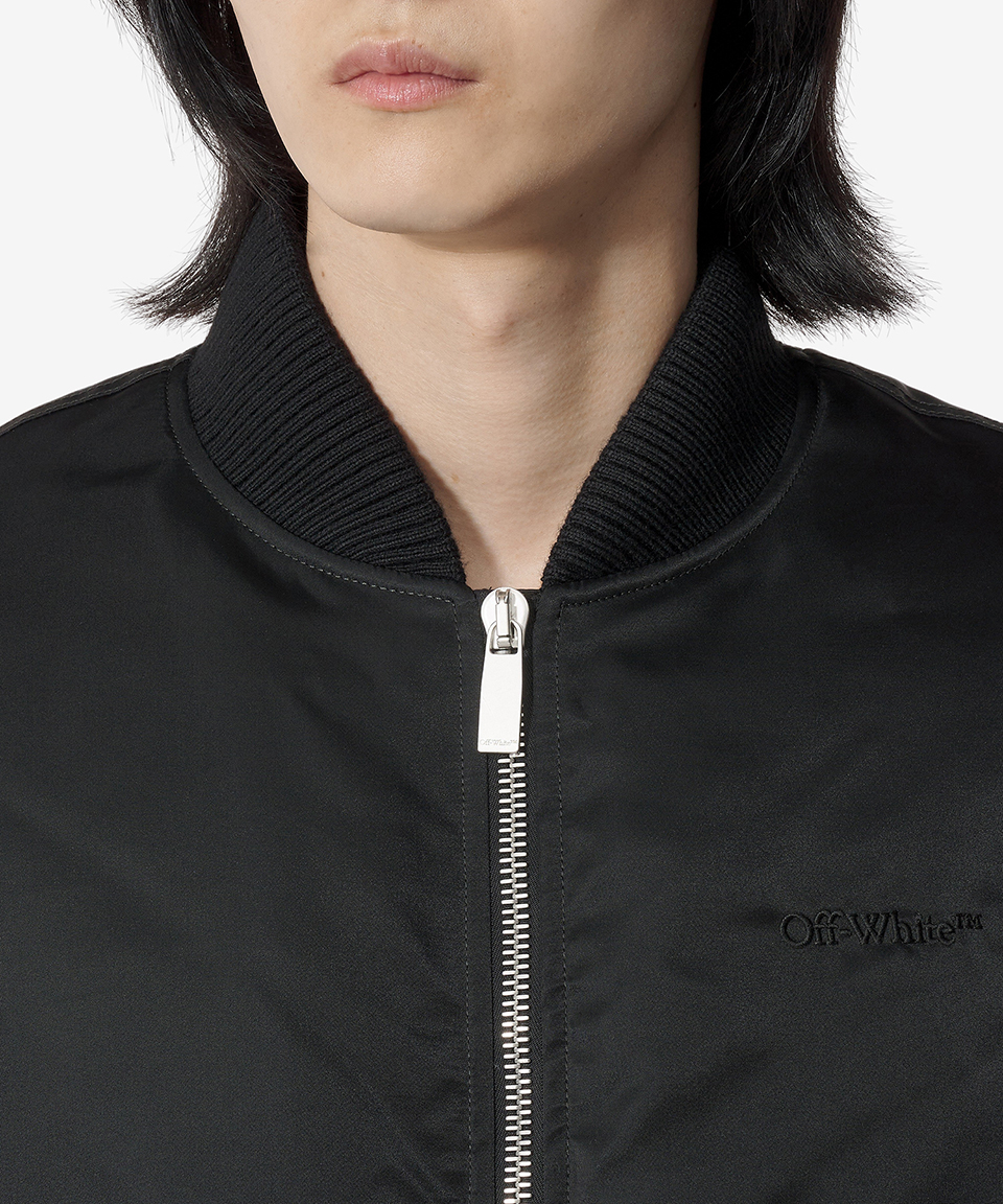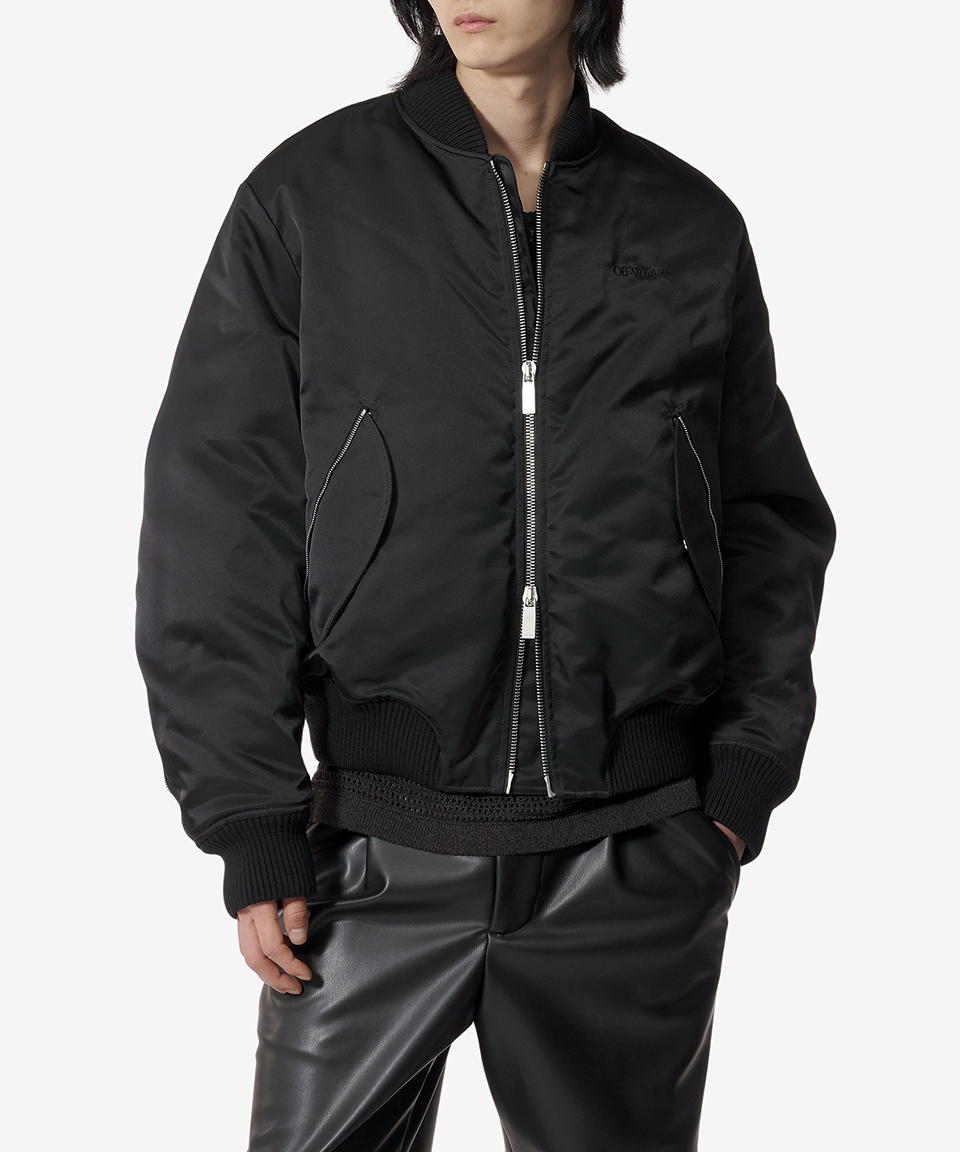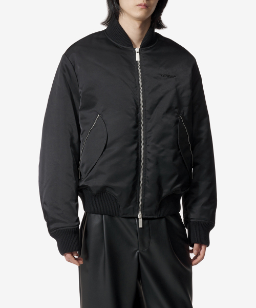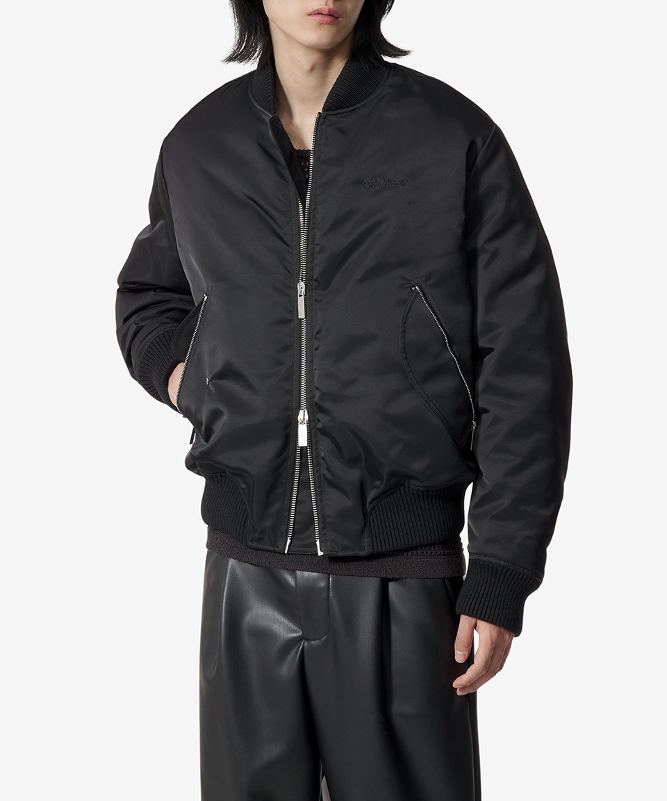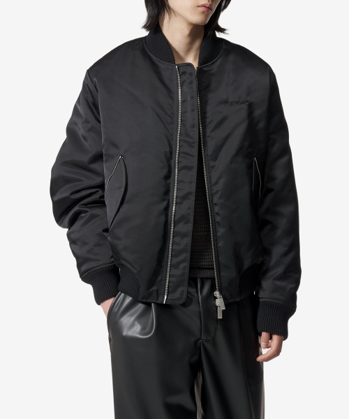 로고 자수 봄버 재킷 - 블랙 / OMEH054C99FAB0011010