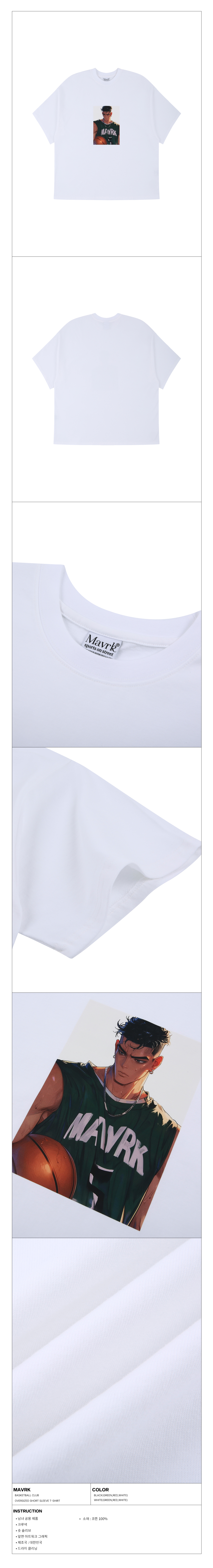 베스킷볼 클럽 티셔츠 화이트(그린)