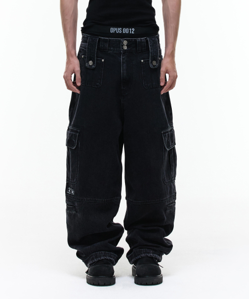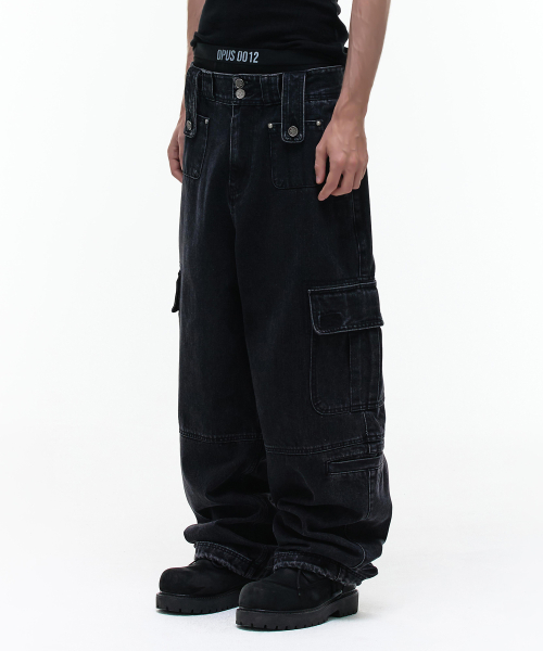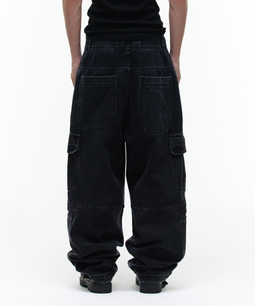 -다양한 포켓 디테일이 적용된 리퀴드핏 카고 데님 팬츠