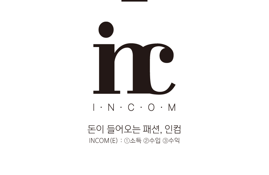 인컴(INCOM)은 가치를 더하는 패션 브랜드입니다. 인컴의 뜻인 '소득, 수입, 수익'을 형상화한 프리미엄 브랜드로, 숙련된 장인들이 좋은 소재를 사용해서 고품질의 제품을 만들어냅니다. 패셔너블한 디자인, 편안한 착용감으로 무장한 인컴의 제품은 단순한 제품이 아닌 삶의 한 부분이 되어 함께하는 순간을 더욱 특별하게 만들어 줄 것입니다. 날마다 가치를 더하는 패션 아이템을 만나보세요.