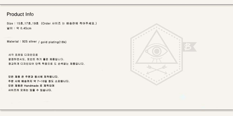 - 구매 가능한 사이즈 : 15호 ,17호, 19호 ,Order(Order 사이즈는 +20,000 원이 추가됩니다.)