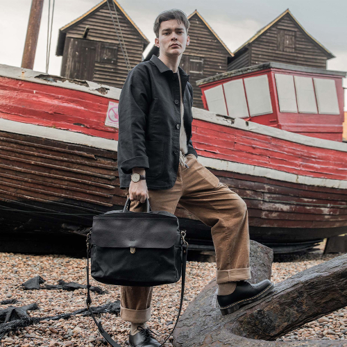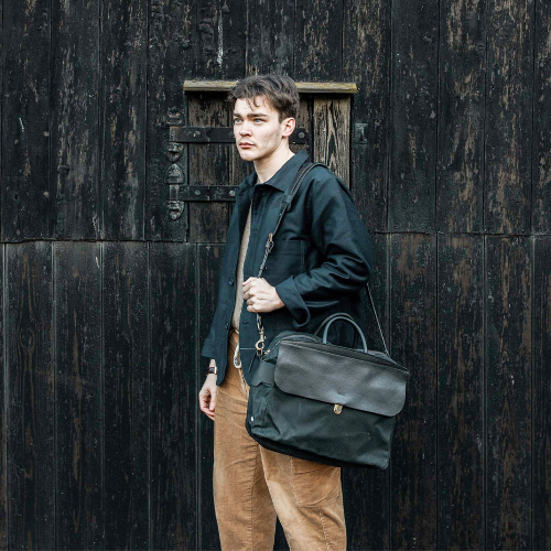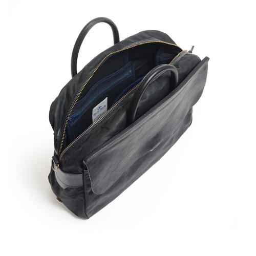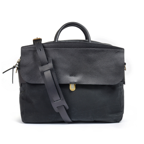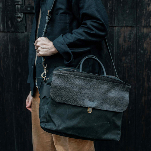 제포 솔로 브리프케이스 왁스캔버스 - 누아르 블랙