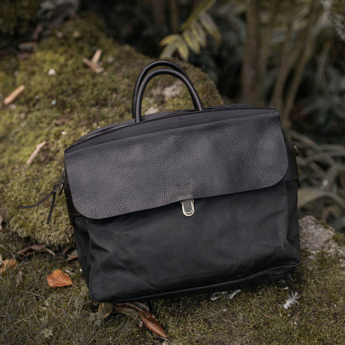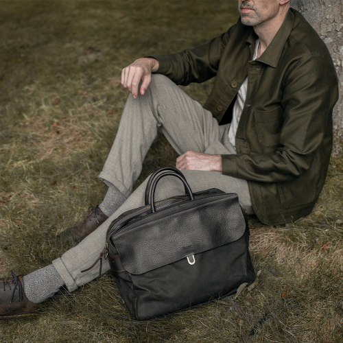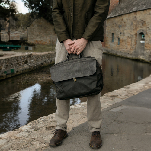 제포 솔로 브리프케이스 왁스캔버스 - 누아르 블랙