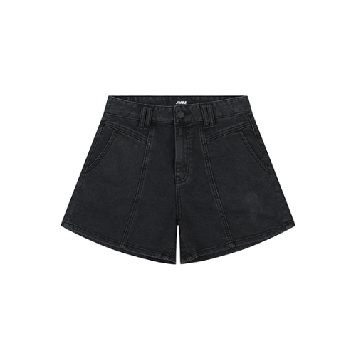 여성) 블랙 스톤워싱 A라인핏 3부 데님 AO2DL3381-BK