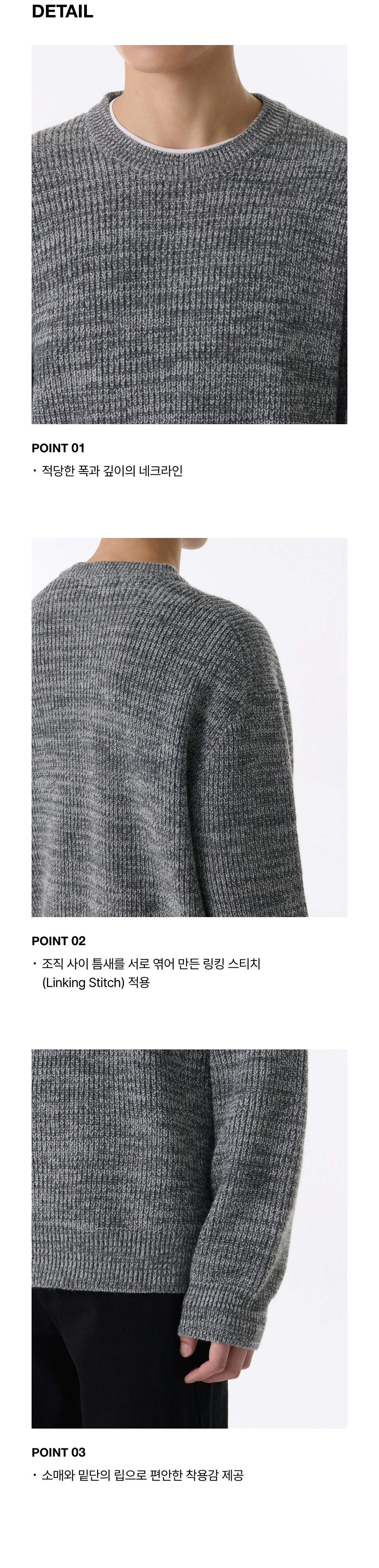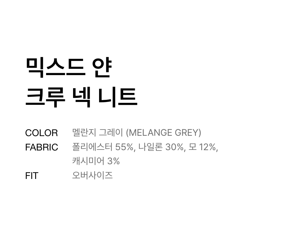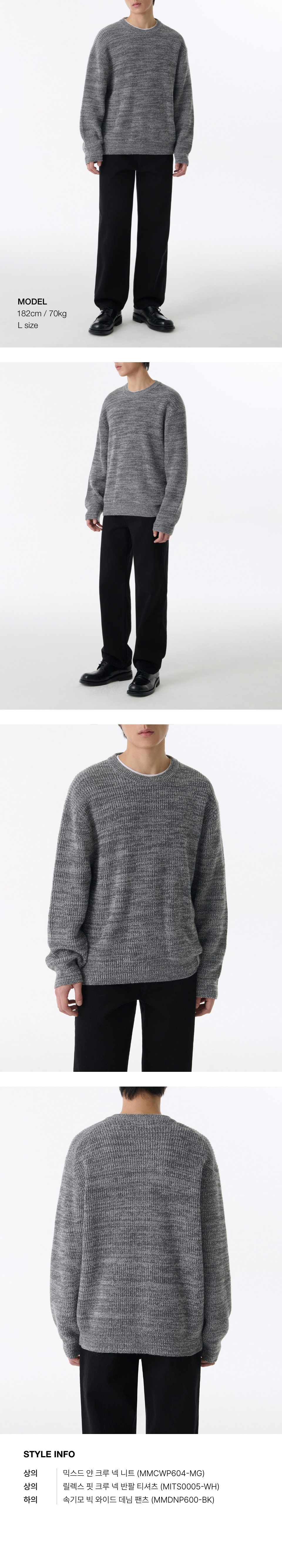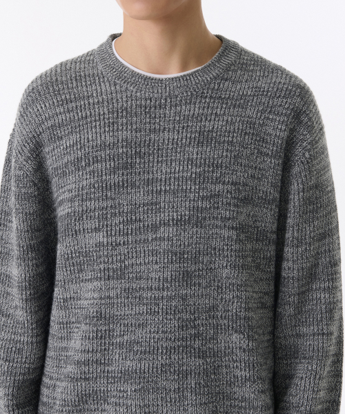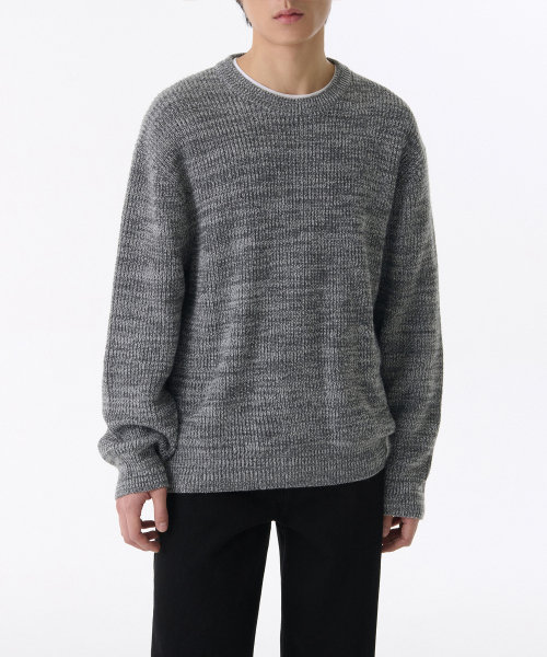 믹스드 얀 크루 넥 니트 [멜란지 그레이]