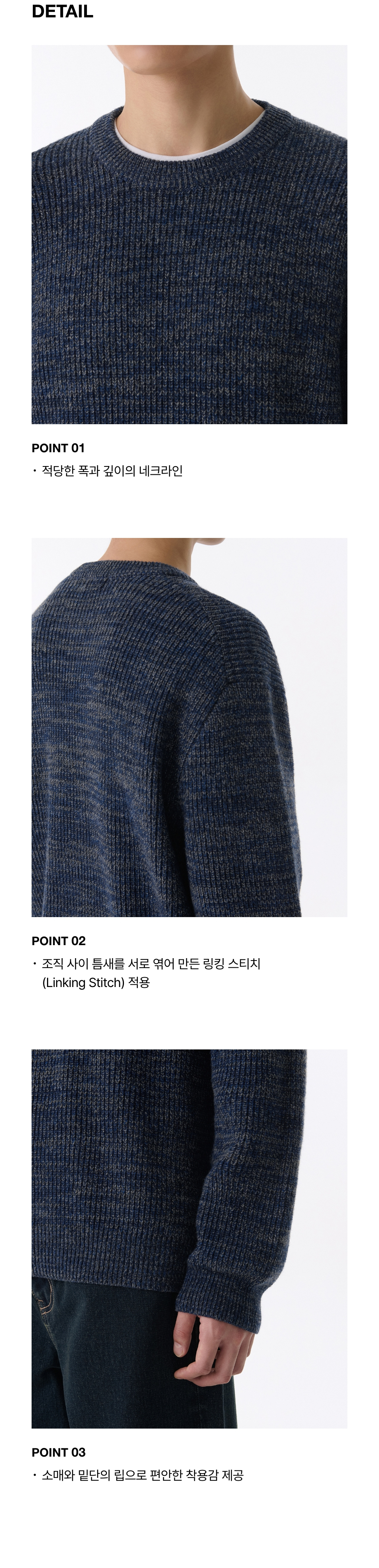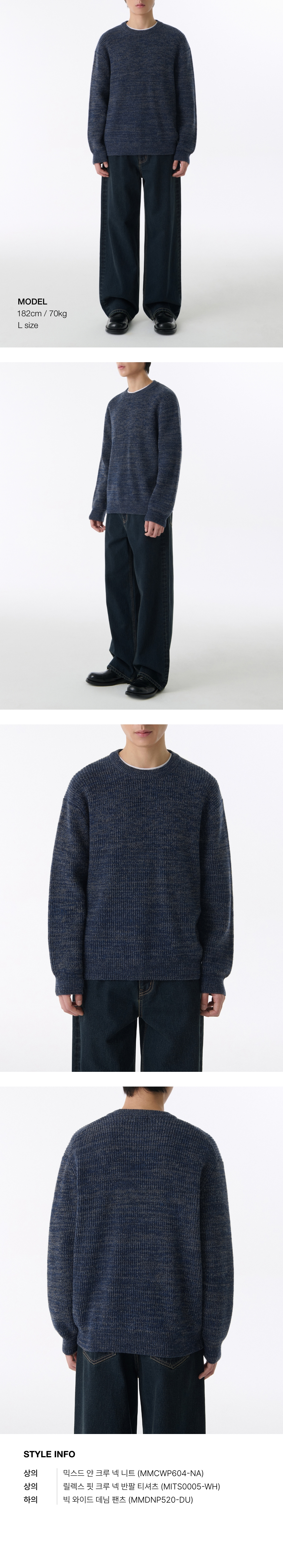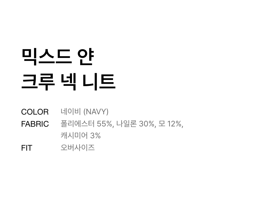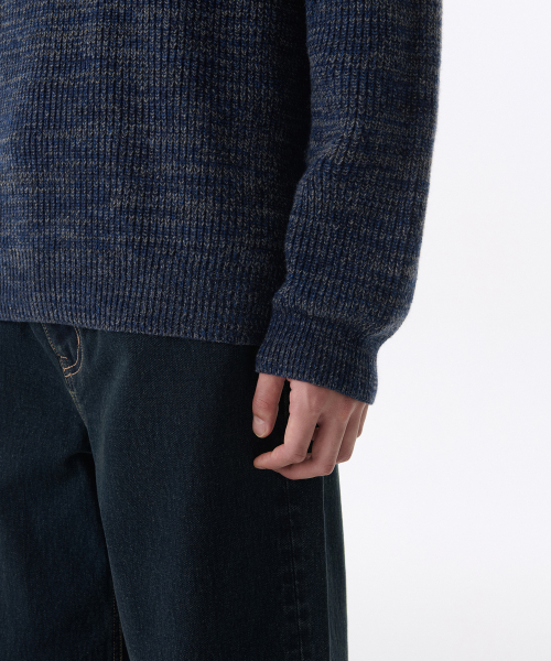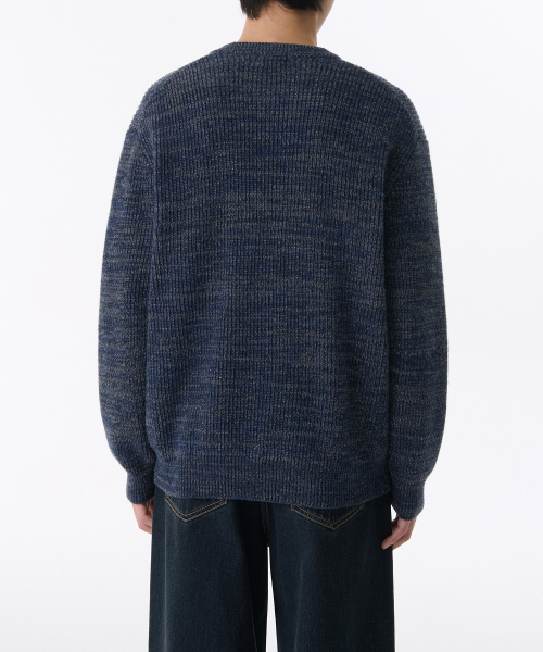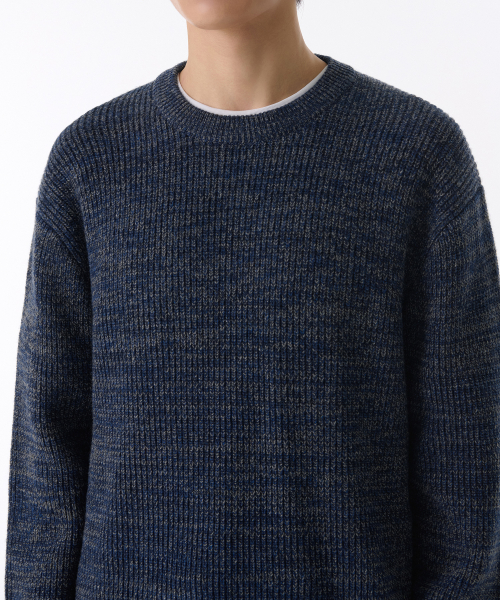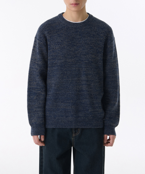 믹스드 얀 크루 넥 니트 [네이비]
