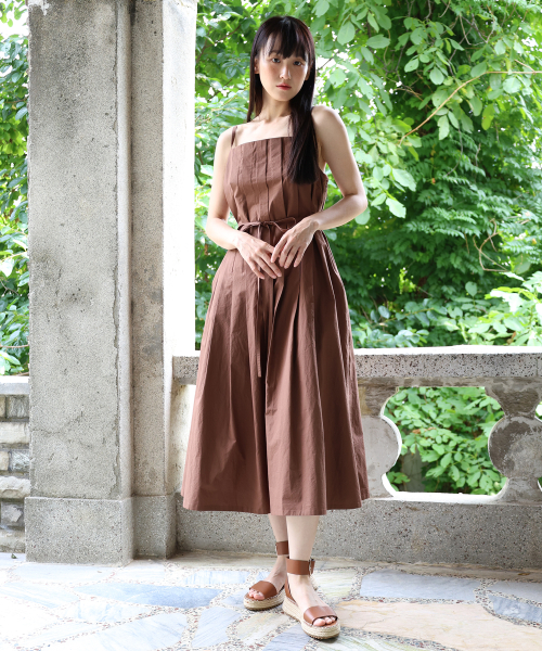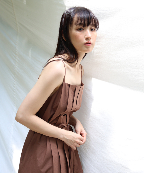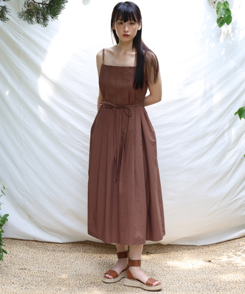 PLEATS CAMISOLE DRESS / BROWN
