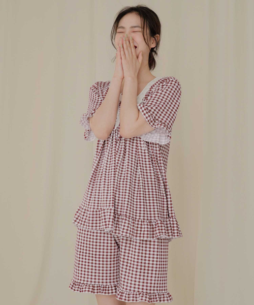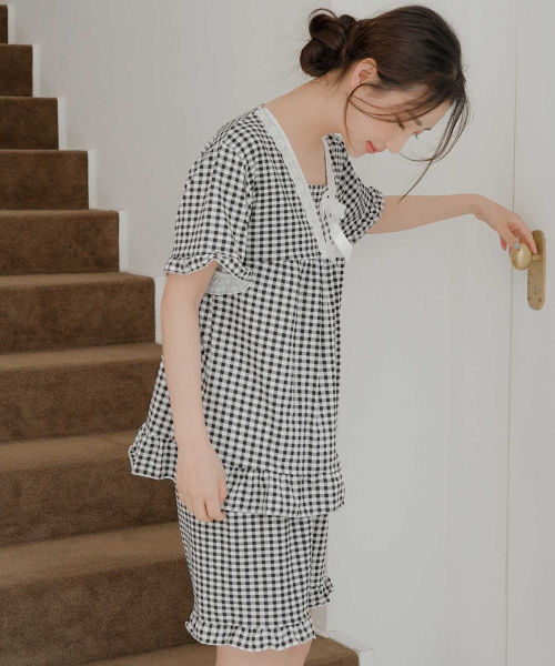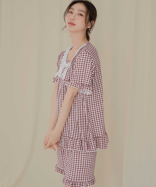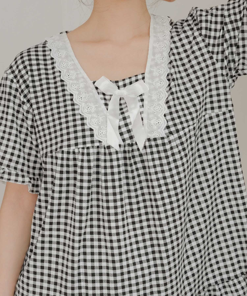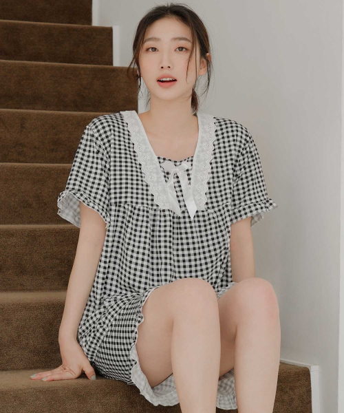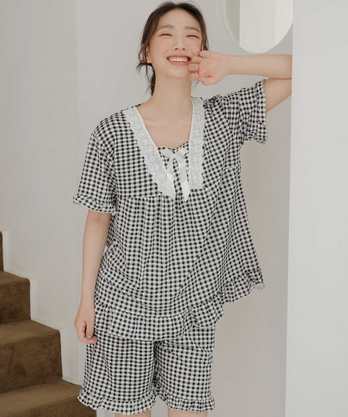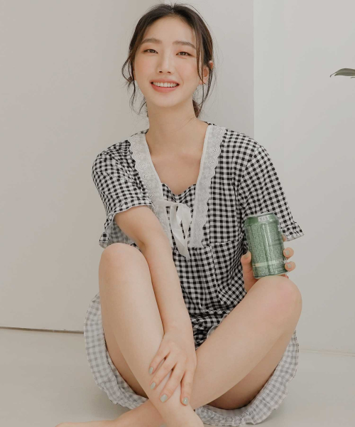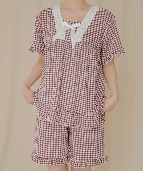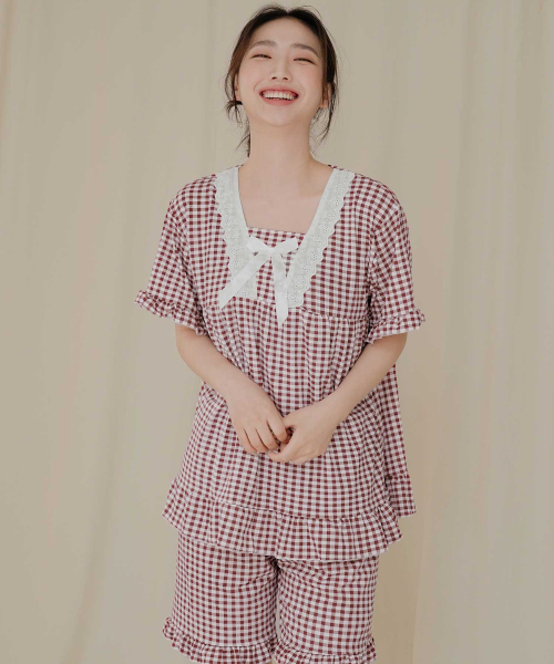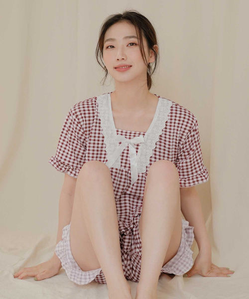 여성 레이스체크 잠옷세트
