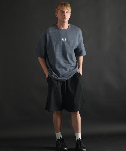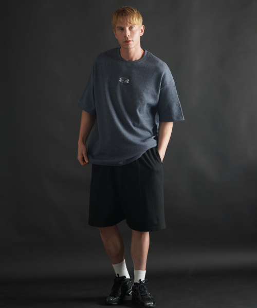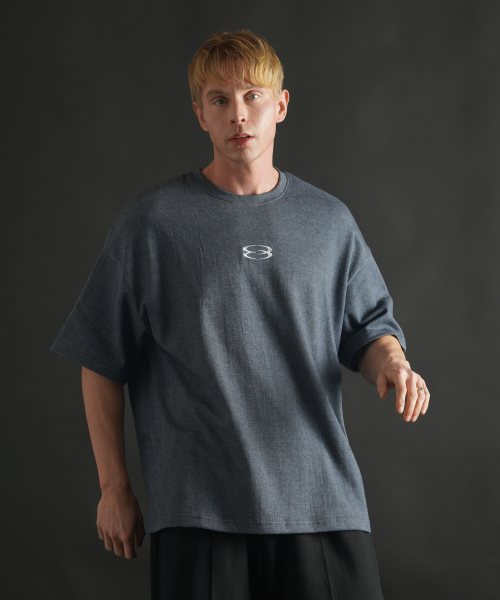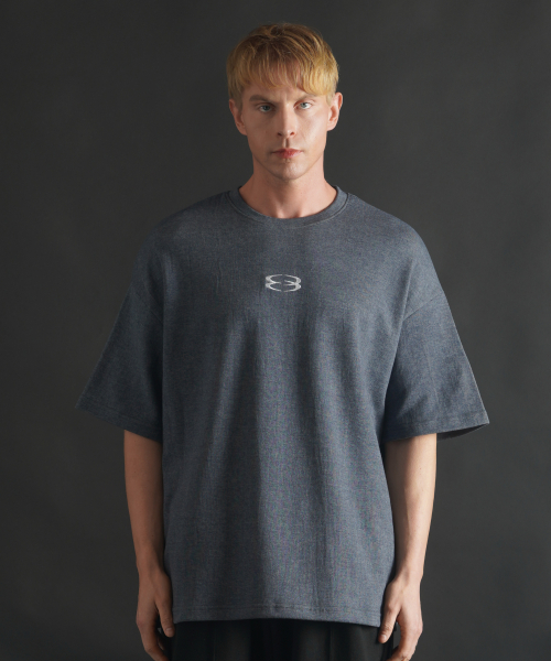 슈퍼 오버핏 로고 반팔 티셔츠 - 블루그레이