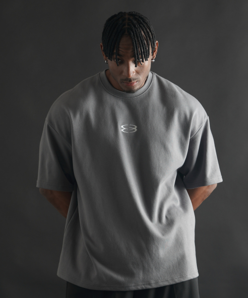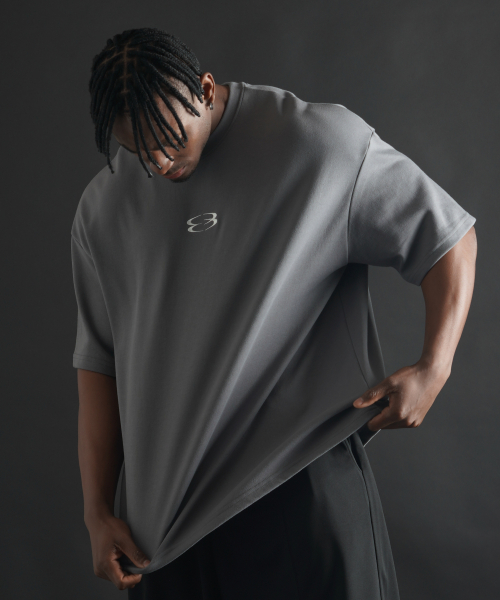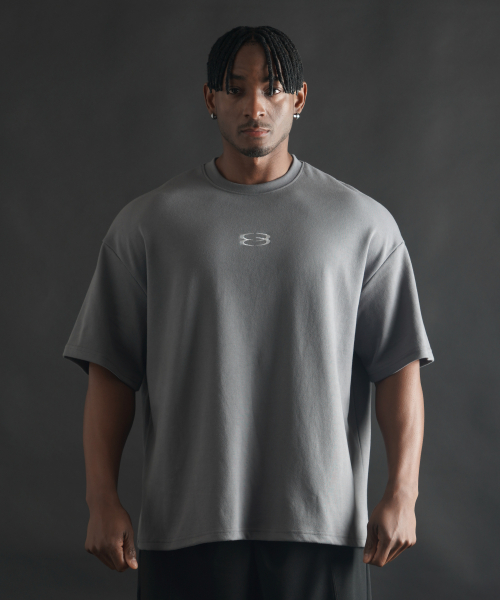슈퍼 오버핏 로고 반팔 티셔츠 - 차콜