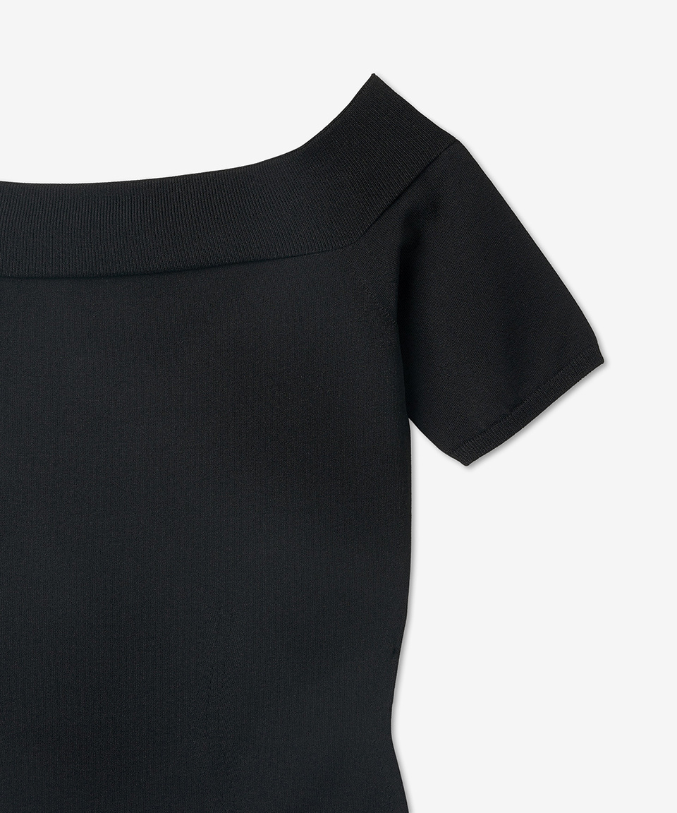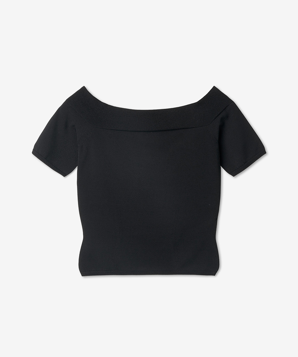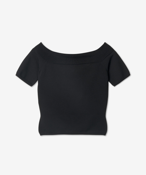 오프숄더 니트 반소매 티셔츠 - 블랙 / 669510Q1AV41000