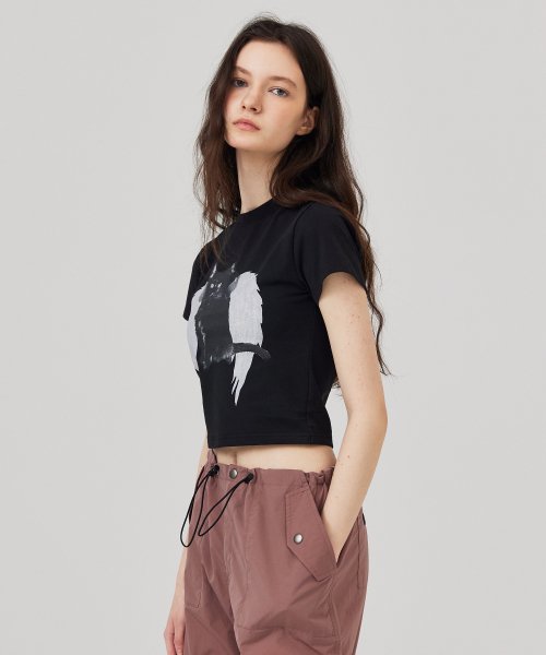 뮤직 그래픽 링거 라글란 반팔티 레드