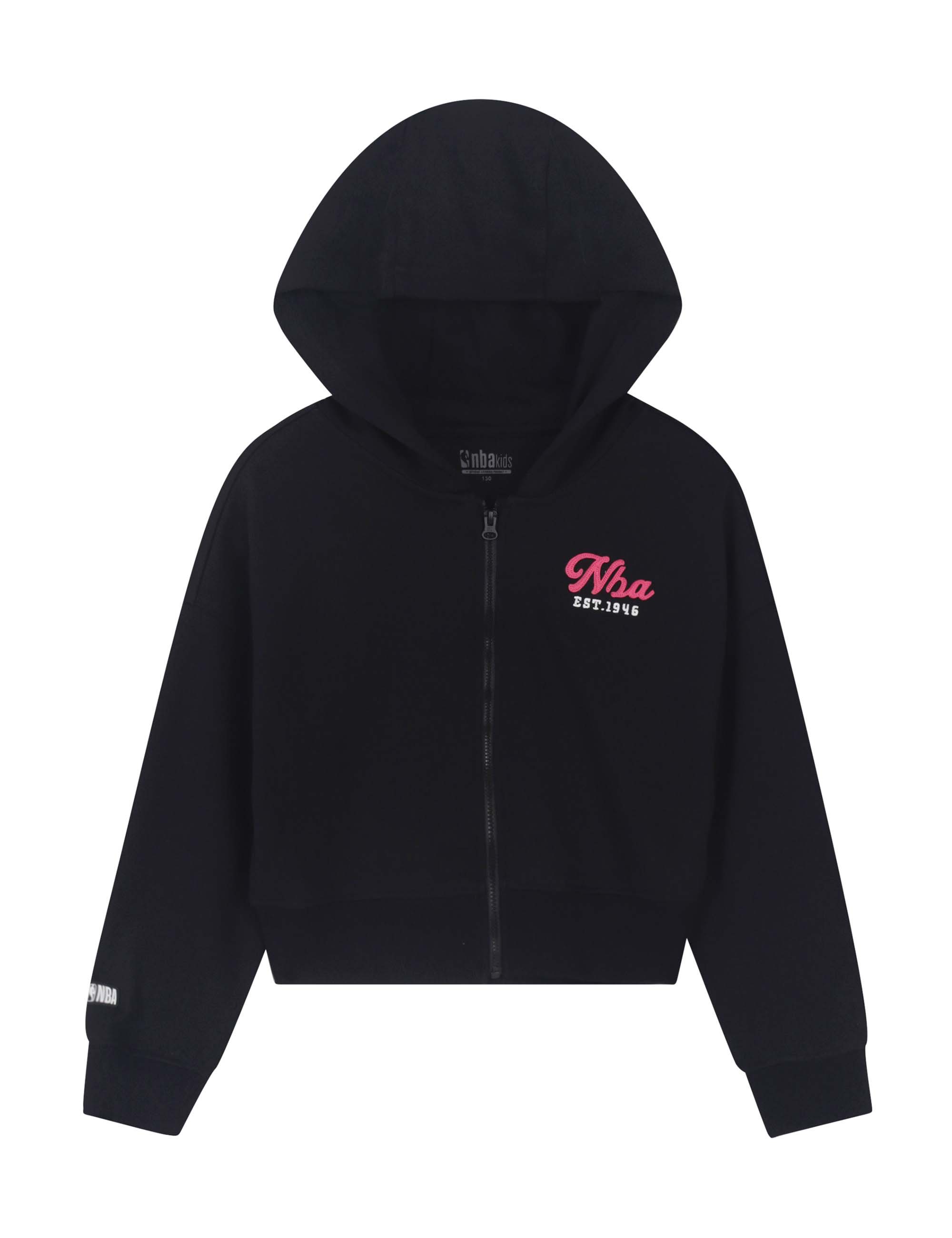 -크롭한 기장감의 후드집업으로 가슴에 NBA로고가 러블리하게 아트웍포인트로 들어간 아이템.