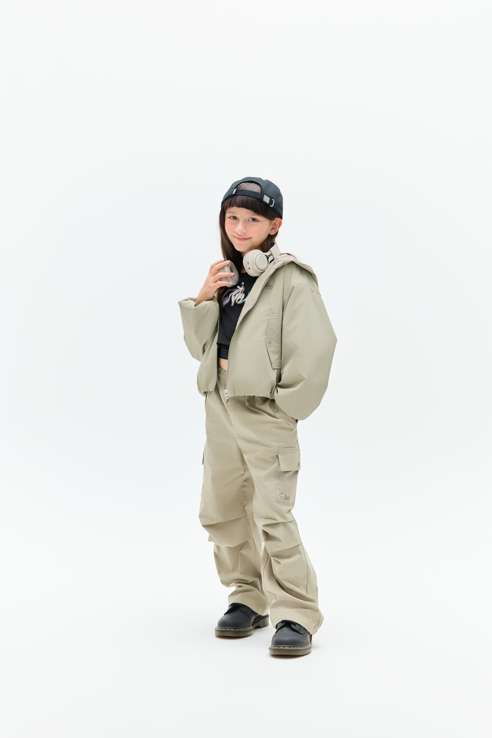 은은한 광택감이 도는 고금스러운 소재와 볼륨감있는 핏의 여아 전용 크롭 JP
