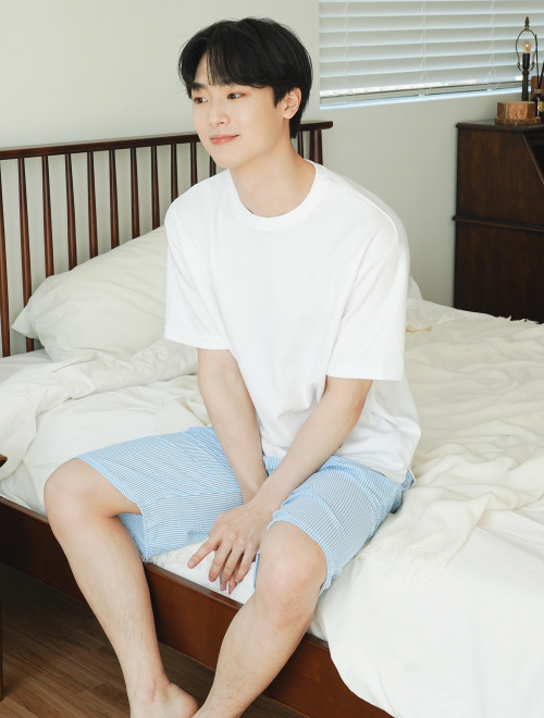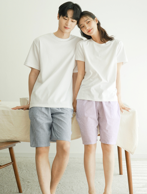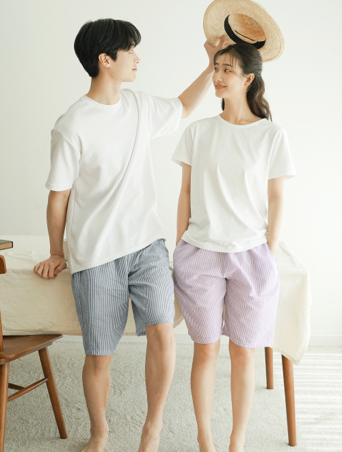 [2SET] 미니멀 잔체크 커플 반팔 잠옷세트