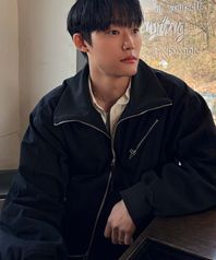 빈티지코튼 하이넥 블루종_BLACK