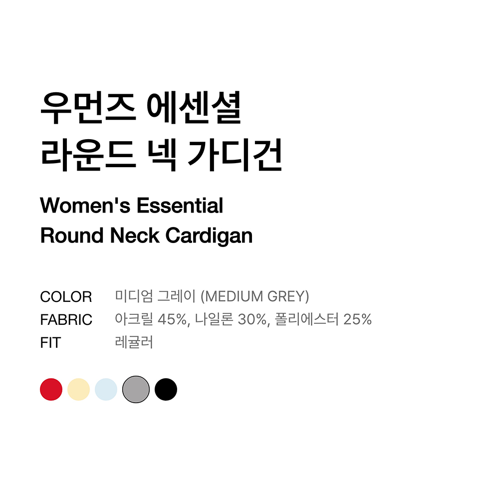 우먼즈 에센셜 라운드 넥 가디건 [미디엄 그레이]